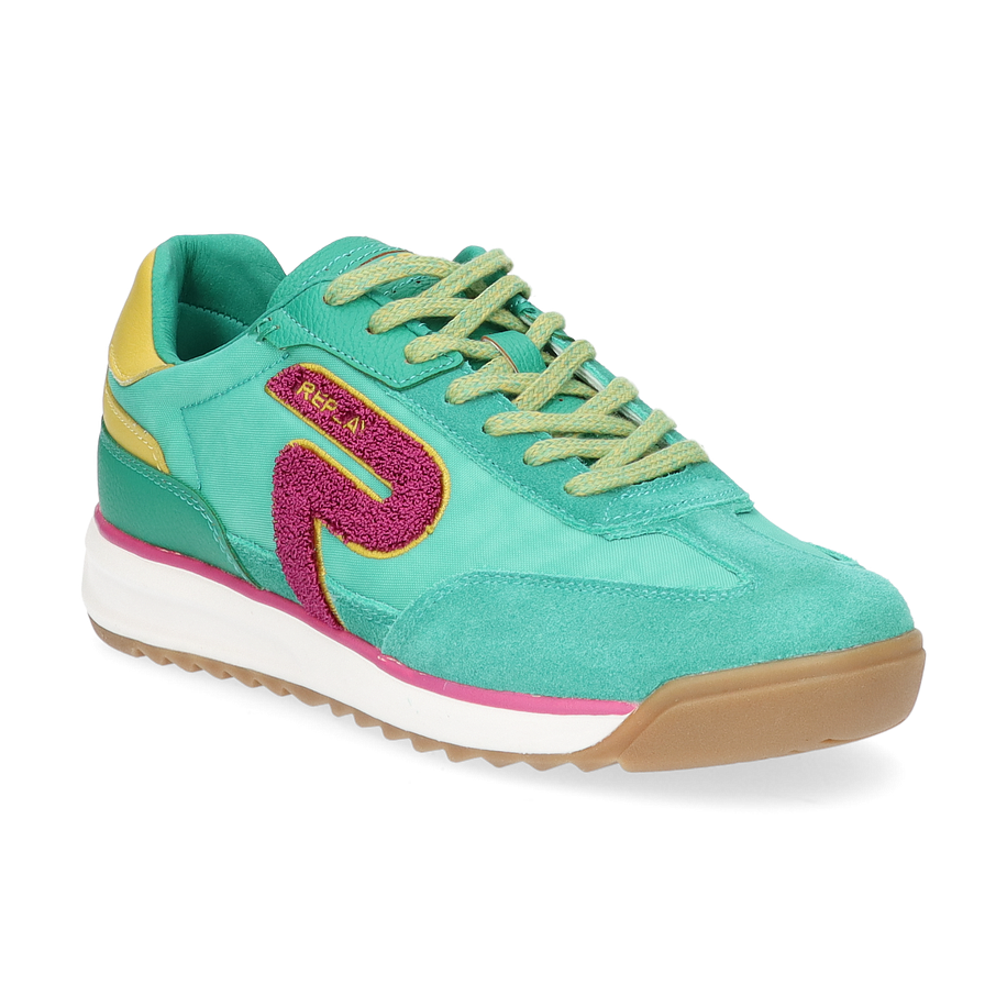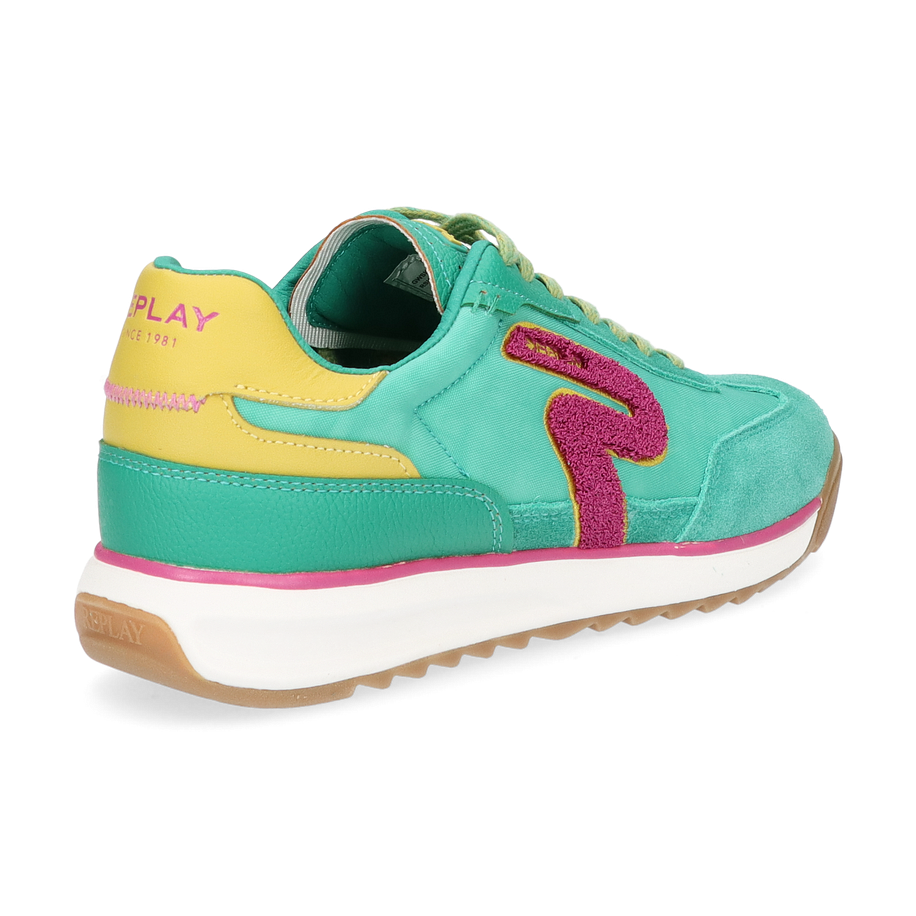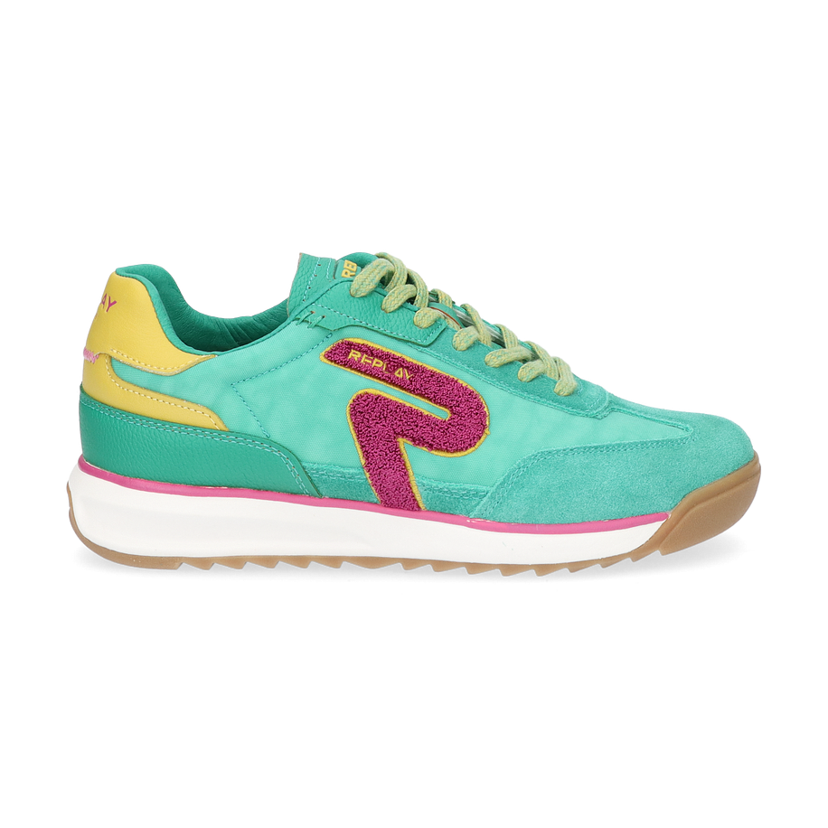 Preis inkl. MwSt.Entdecken Sie die stilvollen Sneaker von Replay für Damen, die mit ihrem lebendigen Design in Grün und auffälligen Akzenten in Pink und Gelb beeindrucken. Der markante Replay-Schriftzug und das charakteristische Logo verleihen diesen Schuhen einen einzigartigen Look, der sowohl sportlich als auch modisch ist. Die Kombination aus verschiedenen Materialien sorgt für eine interessante Textur und macht diese Sneaker zu einem echten Hingucker.
