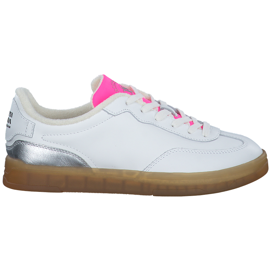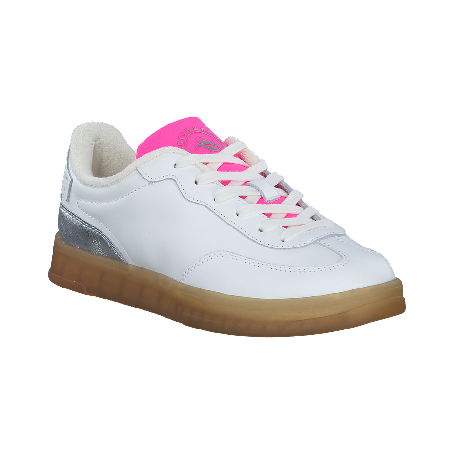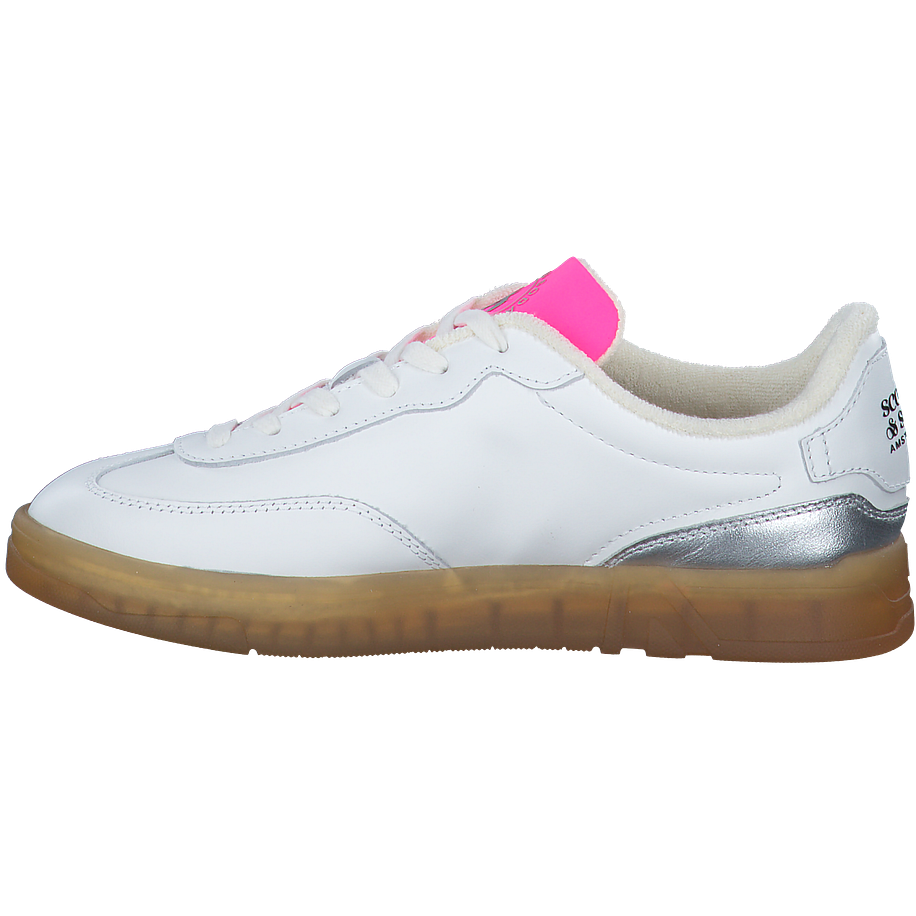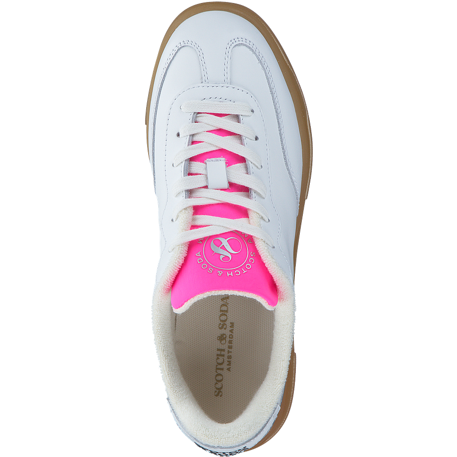 Entdecken Sie den stilvollen und komfortablen SCOTCH&SODA Sneaker für Damen. Dieser weiße Sneaker besticht durch sein hochwertiges Lederobermaterial und das weiche Textilfutter. Die Innensohle aus Textil und die robuste Gummisohle sorgen für optimalen Tragekomfort. Mit einer Absatzhöhe von 3 cm und einem Wechselfußbett bietet dieser Sneaker eine perfekte Passform. Ein besonderer Hingucker ist der Neonpinker Farbakzent, der dem Schuh einen frischen und modernen Look verleiht. Dieser SCOTCH&SODA Sneaker ist die perfekte Ergänzung für jedes Outfit.