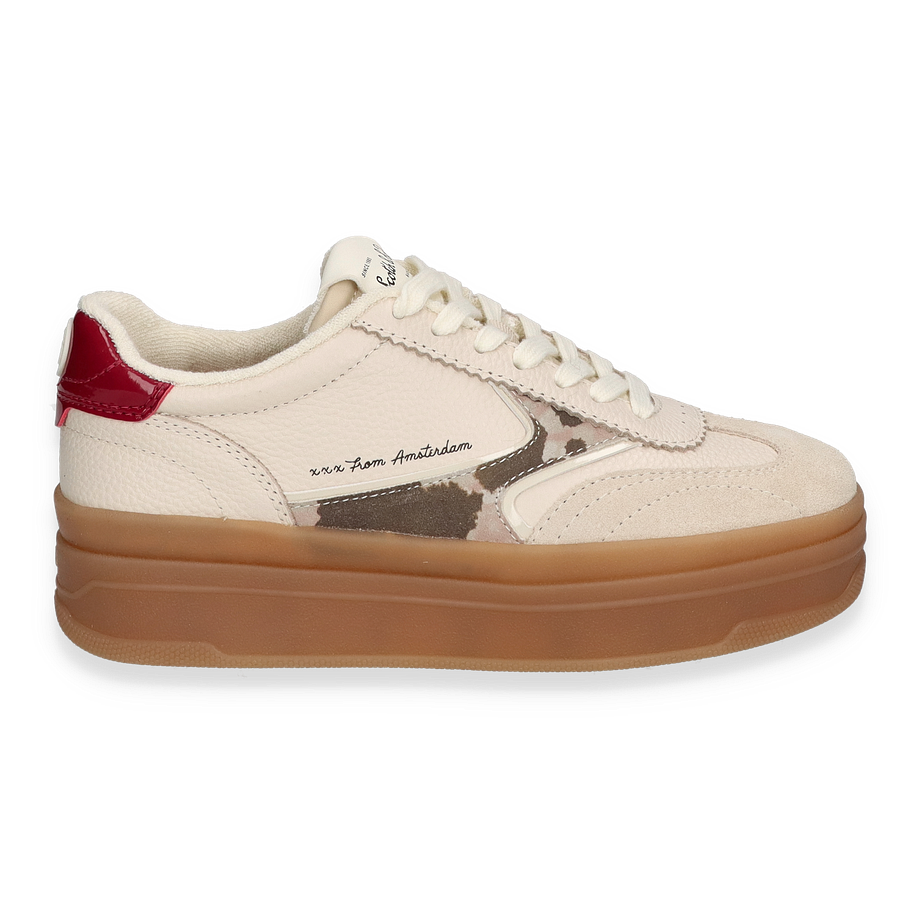 Preis inkl. MwSt.Der MINNY Sneaker von Scotch & Soda präsentiert sich in einem eleganten Beige/Grau, das durch subtile Details und eine kontrastierende Sohle besticht. Die Kombination aus hochwertigem Leder und sonstigem Material verleiht dem Schuh eine ansprechende Textur und einen modernen Look. Der Sneaker ist mit einem markanten, erhöhten Plateau-Absatz von 4,5 cm ausgestattet, der sowohl Stil als auch Komfort bietet. Die Textilfütterung sorgt für ein angenehmes Tragegefühl, während die Gummisohle für zuverlässige Stabilität sorgt.