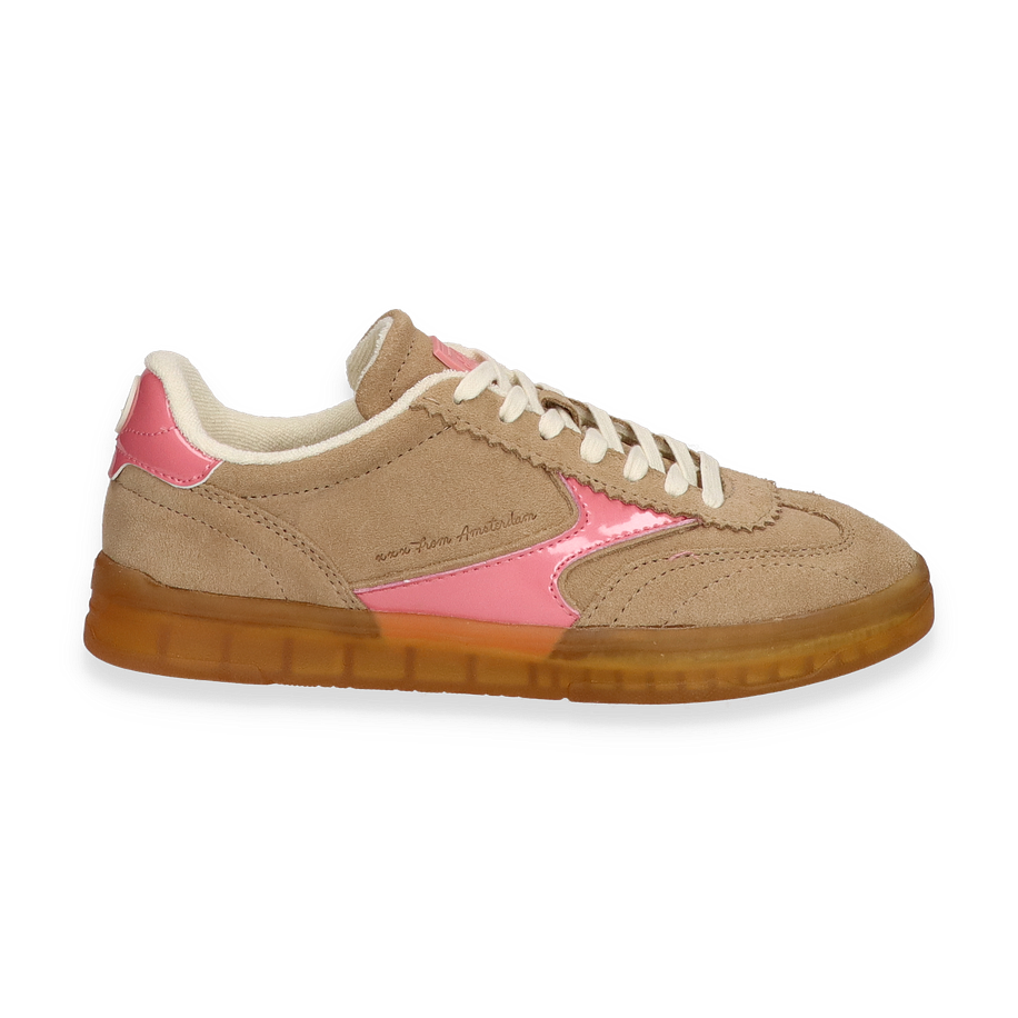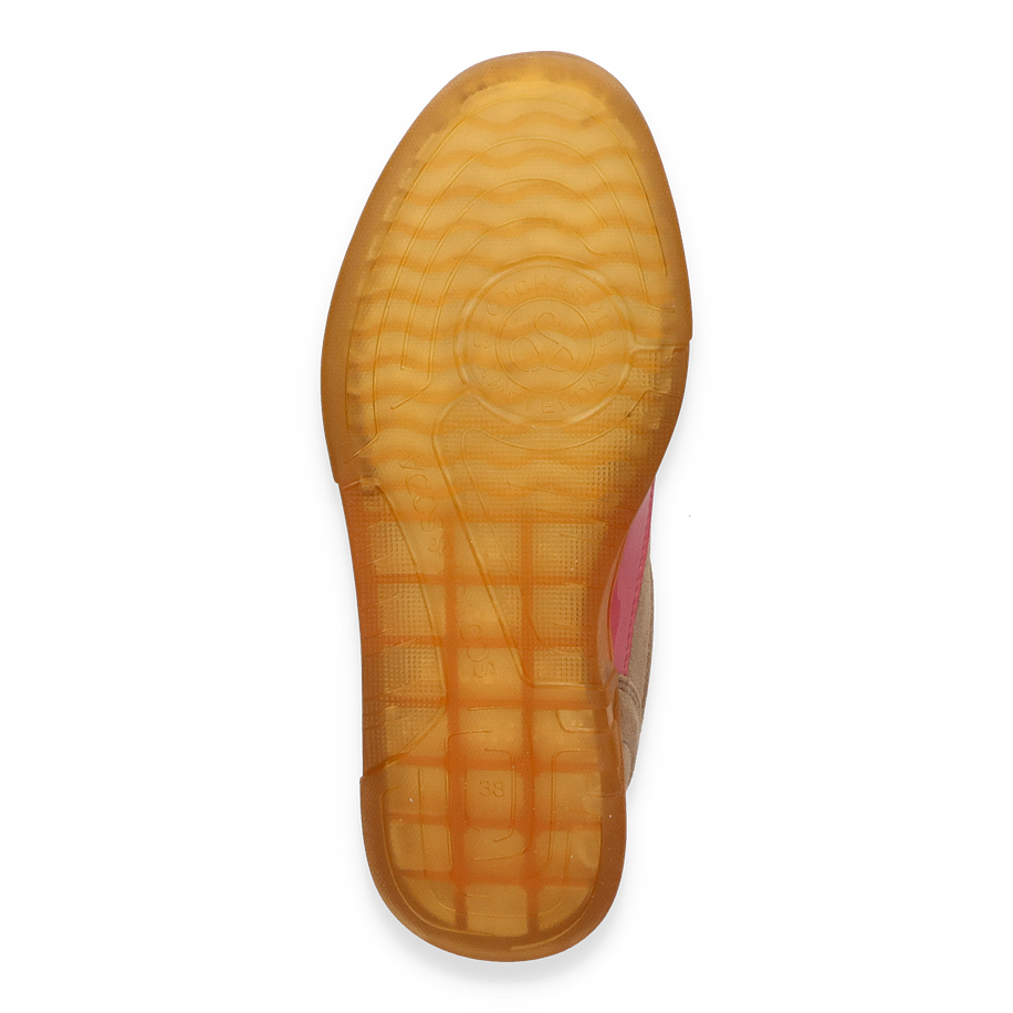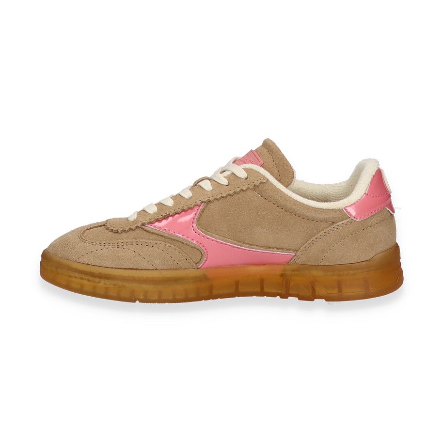 Preis inkl. MwSt.Entdecken Sie die stilvollen Schnürschuhe für Damen, die durch ihr einzigartiges Design und ihre hochwertige Verarbeitung überzeugen. Diese Schuhe präsentieren sich in einem eleganten Beige mit auffälligen rosafarbenen Akzenten, die einen Hauch von Farbe und Modernität verleihen. Das Obermaterial aus weichem Wildleder sorgt für einen luxuriösen Look, während die kontrastierenden weißen Schnürsenkel für einen klassischen Touch sorgen. Die robuste, honigfarbene Sohle bietet nicht nur Stabilität, sondern auch einen modischen Akzent.