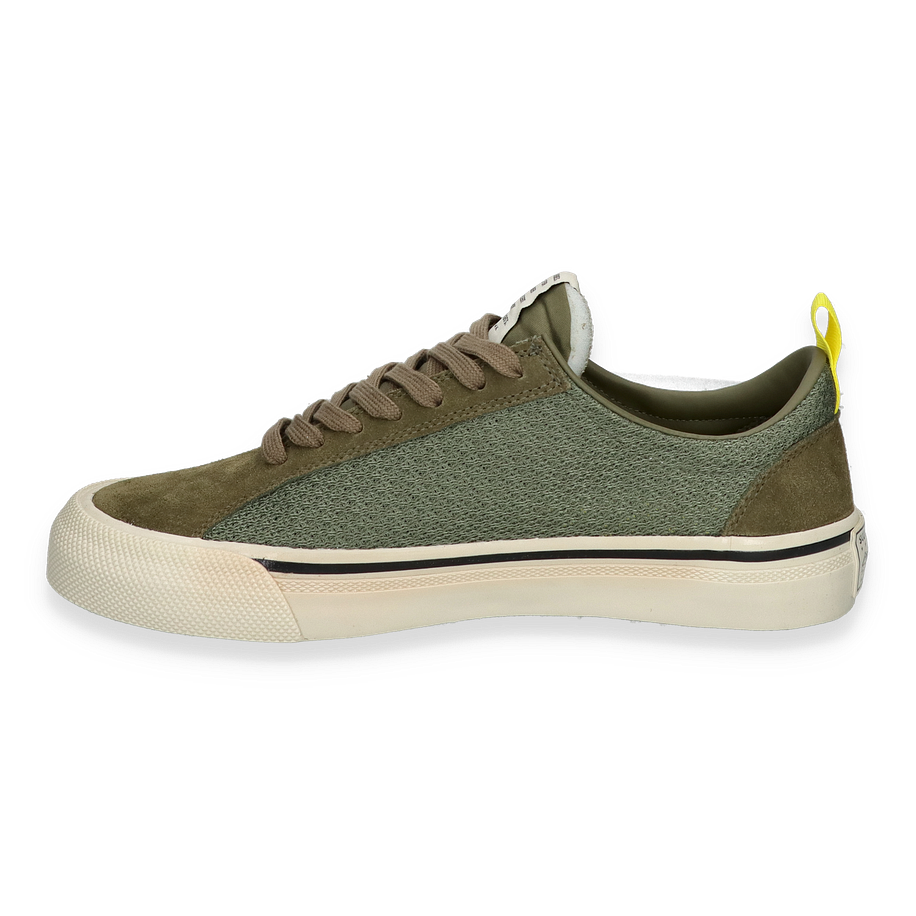 Preis inkl. MwSt.Der Scotch & Soda Sneaker WAGGER in Dunkelgrün ist ein stilvoller Begleiter für Herren, der durch sein modernes Design und die hochwertige Verarbeitung besticht. Der Schuh kombiniert Leder- und Textilmaterialien im Obermaterial, was ihm eine einzigartige Textur und einen eleganten Look verleiht. Die subtile Farbgebung in Dunkelgrün wird durch die markante gelbe Fersenschlaufe und das markante Logo auf der Seite akzentuiert, was dem Sneaker einen urbanen und zeitgemäßen Touch verleiht.