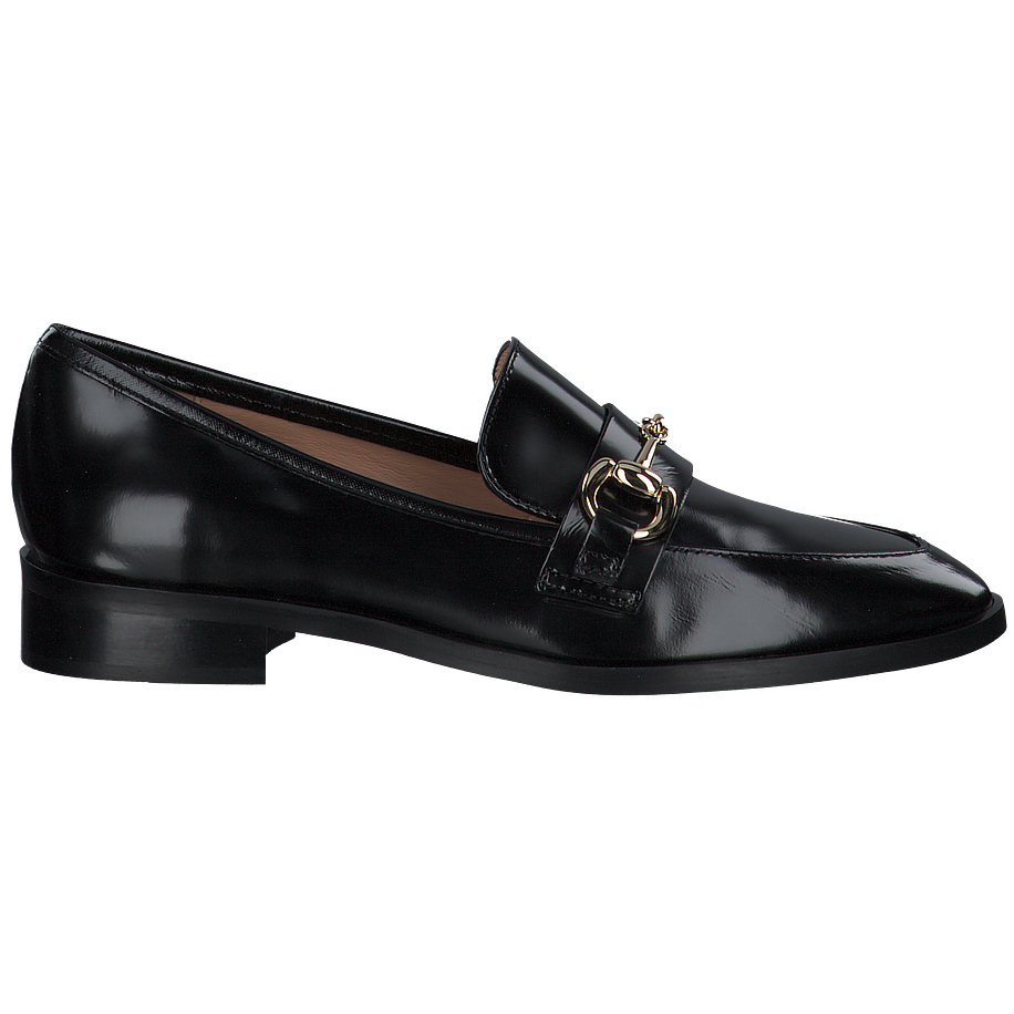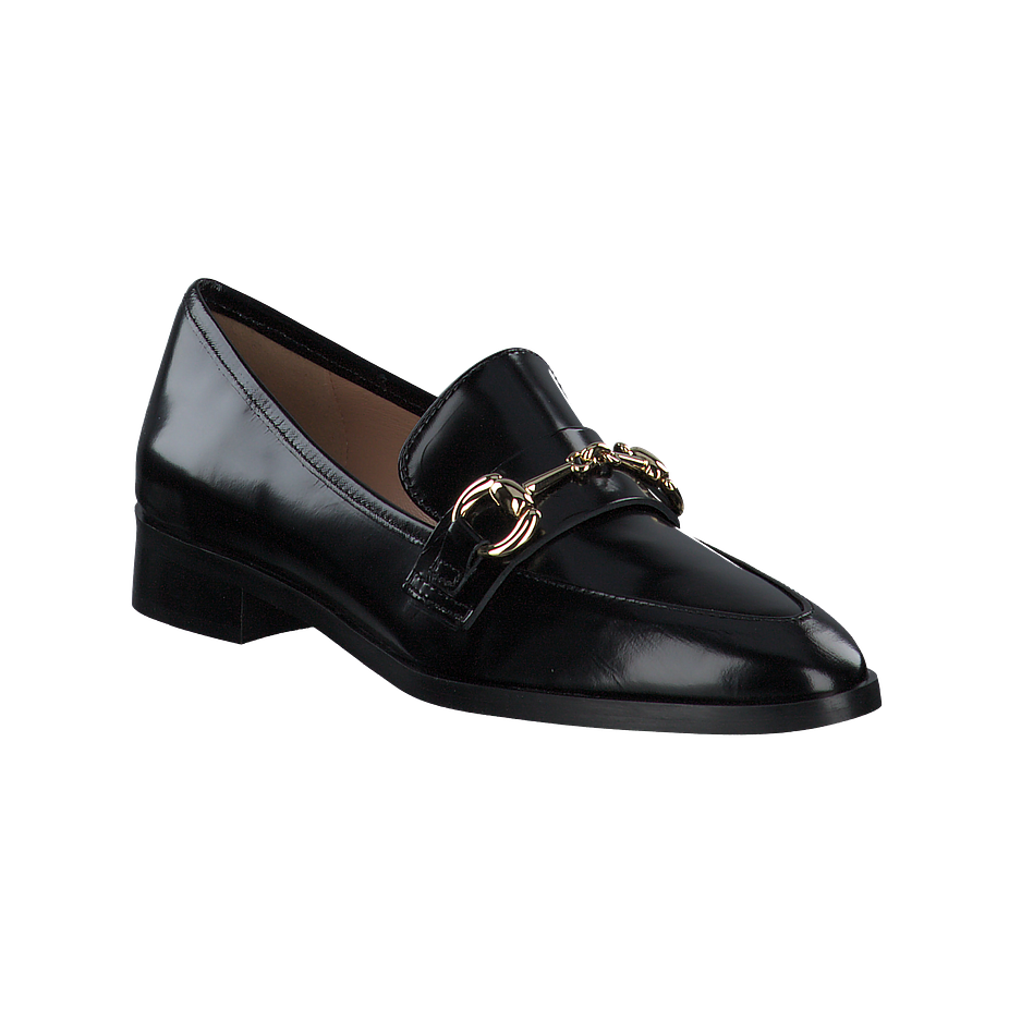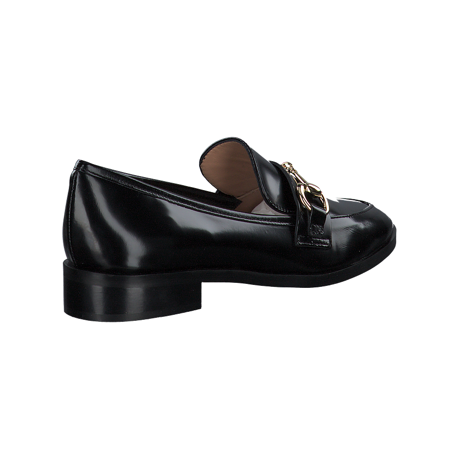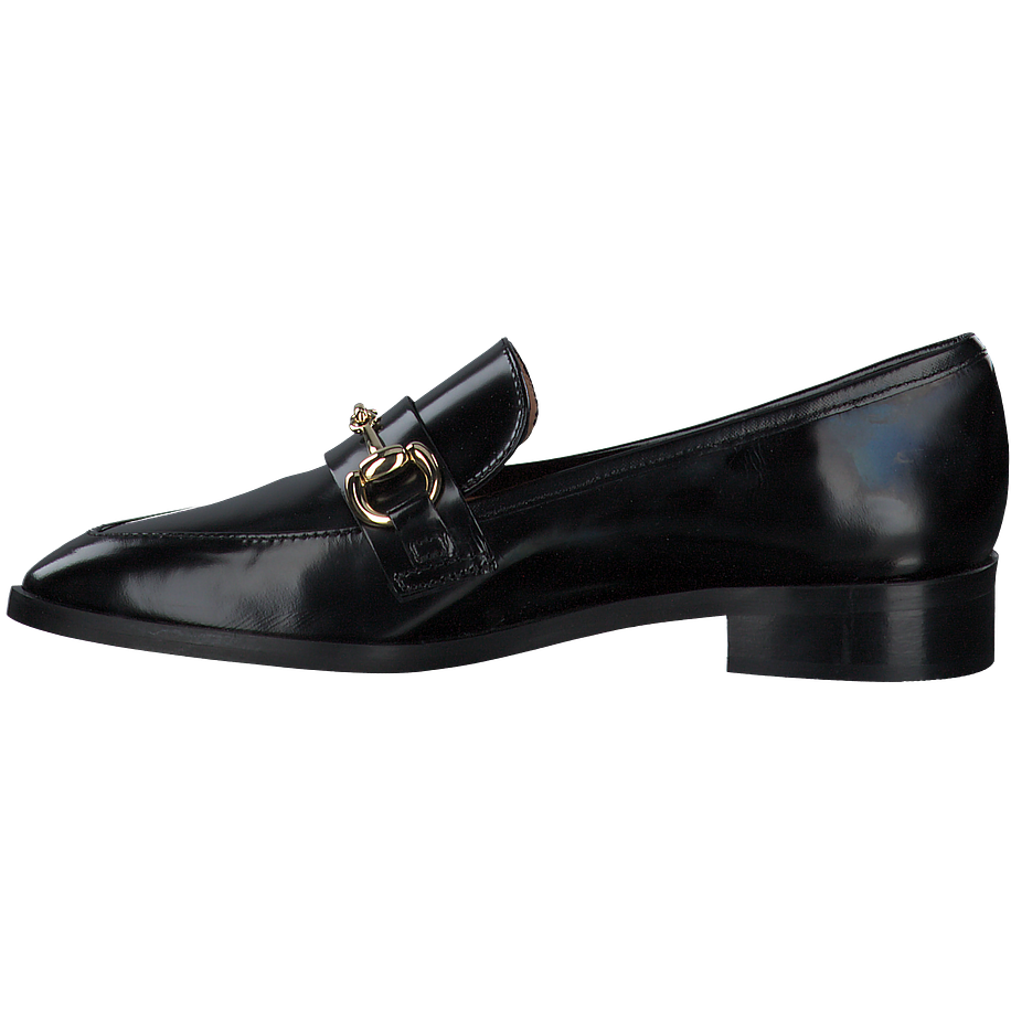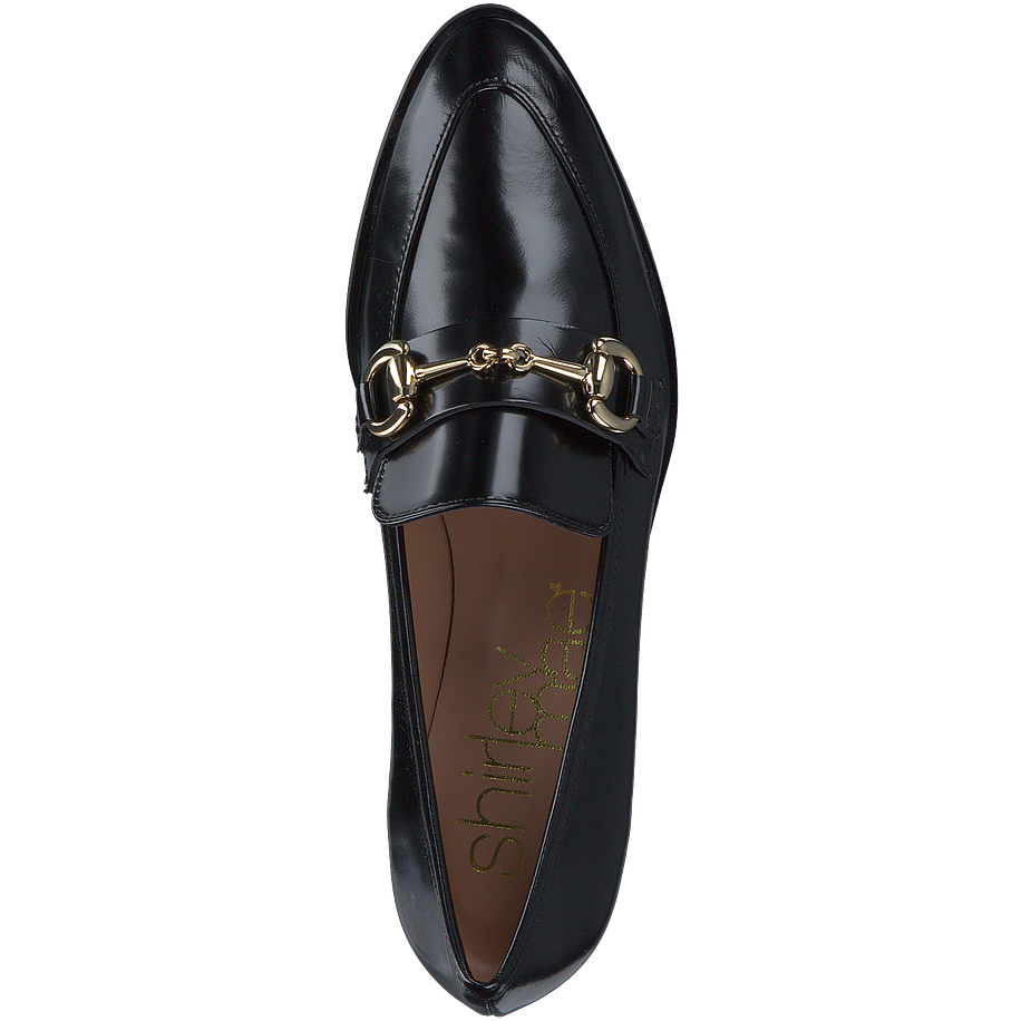 Preis inkl. MwSt.Klassische schwarze Slipper sind vor allem im Büro eine gute Wahl, da sie elegant wirken und dabei mit einem tollen Komfort überzeugen können - und diese schicken Shirley Mae Slipper für Damen bilden da keine Ausnahme! Die edlen Damenschuhe sind aus feinem schwarzem Leder gefertigt, welches mit einer luxuriösen Lackierung versehen für einen aufregenden Hingucker sorgt. Zudem ist das hochwertige Material sehr angenehm zu tragen. Goldfarbene Schnallen am Vorderfuß unterstreichen Ihren femininen und eleganten Stil perfekt und verleihen Ihren Alltagsoutfits Klasse und Charme.