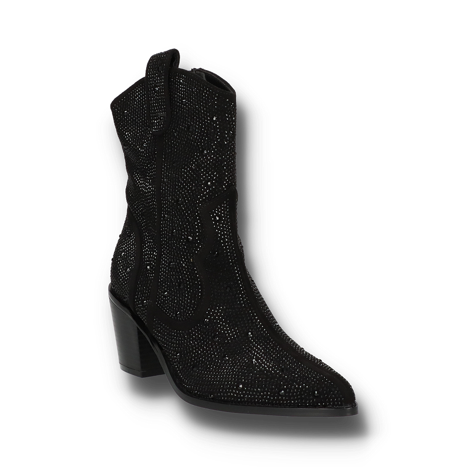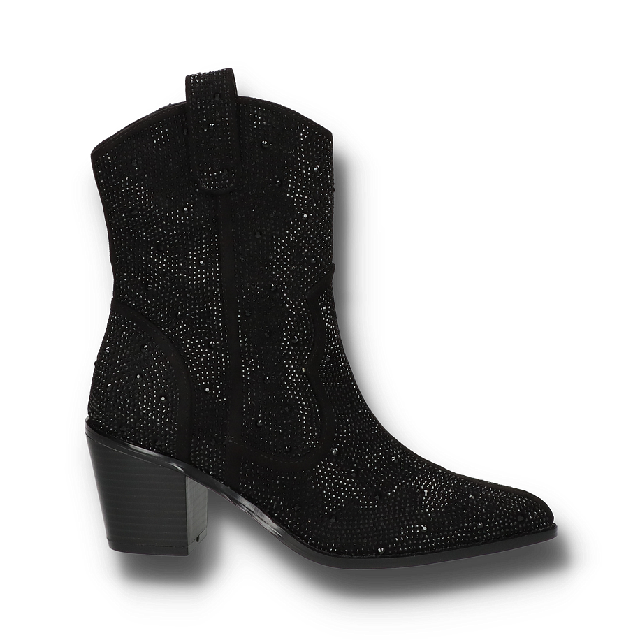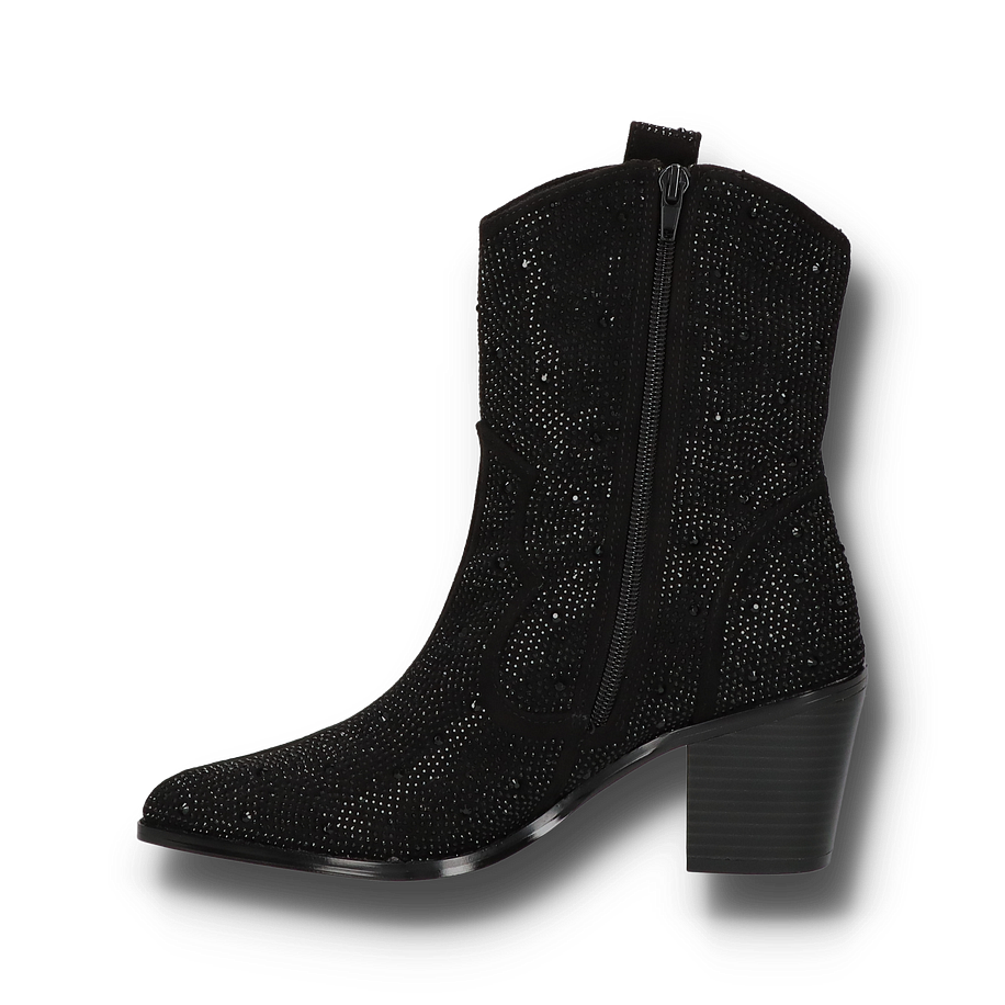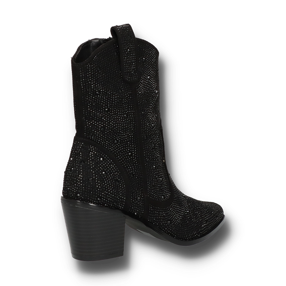 Preis inkl. MwSt.Entdecken Sie die stilvollen Western Boots von Shirley May, die in einem eleganten Schwarz erstrahlen. Diese Schuhe für Damen vereinen klassische Cowboy-Elemente mit einem modernen Touch. Das Obermaterial aus Textil ist mit funkelnden Details verziert, die jedem Outfit einen Hauch von Glamour verleihen. Der seitliche Reißverschluss sorgt für ein einfaches An- und Ausziehen, während der robuste Blockabsatz mit einer Höhe von 7 cm für einen sicheren und bequemen Stand sorgt. Die Innenmaterialien bestehen aus einer Kombination von Textil und sonstigem Material, was für ein angenehmes Tragegefühl sorgt. Die Innensohle aus sonstigem Material und die Gummisohle bieten zusätzlichen Komfort und Haltbarkeit. Diese Western Boots sind die perfekte Wahl für modebewusste Damen, die einen Hauch von Wildwest-Romantik in ihre Garderobe bringen möchten.