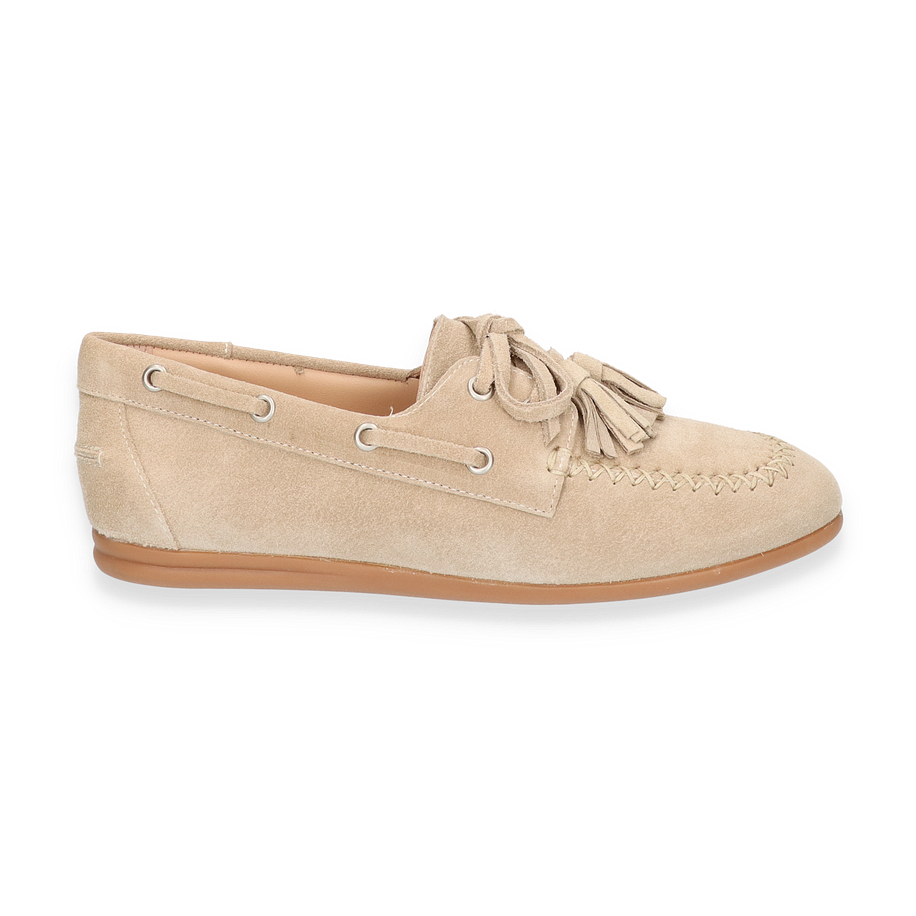 Preis inkl. MwSt.Entdecken Sie die eleganten Bootsschuhe für Damen von Si in einem ansprechenden Beige-Ton. Diese Schuhe zeichnen sich durch ihr stilvolles Design mit dekorativen Quasten und feinen Nähten aus, die einen Hauch von Raffinesse verleihen. Die weiche Lederoberfläche sorgt für einen luxuriösen Look und angenehmen Tragekomfort, während die flache Gummisohle einen sicheren Halt bietet. Perfekt für einen entspannten Tag am Wasser oder einen stilvollen Stadtbummel.