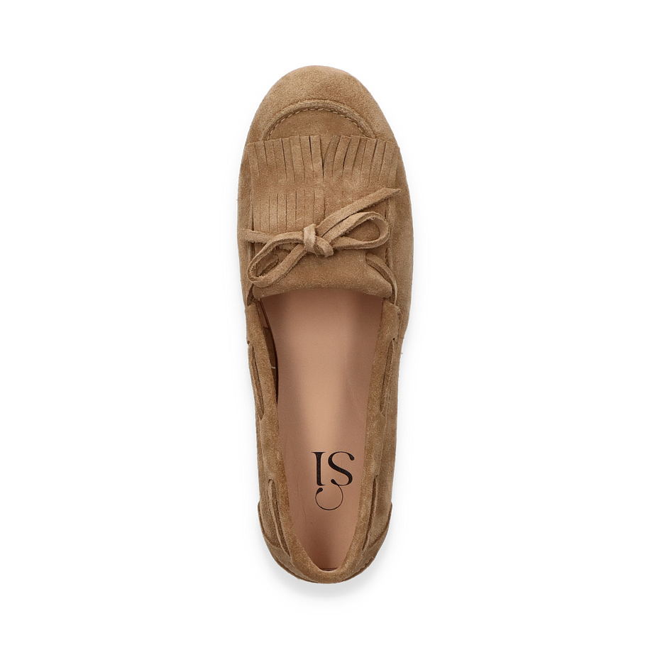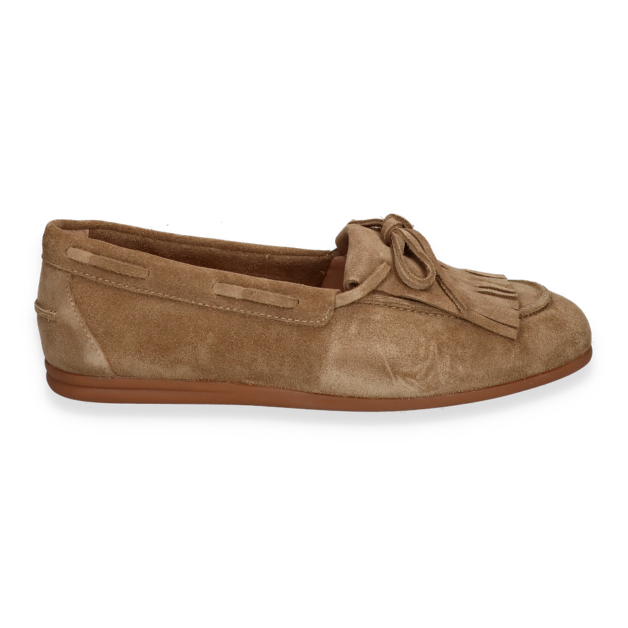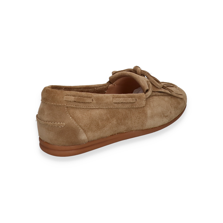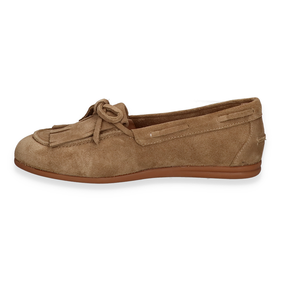 Preis inkl. MwSt.Entdecken Sie die eleganten Bootsschuhe von Si in einem ansprechenden Beige-Ton, die für Damen entworfen wurden. Diese Schuhe vereinen Stil und Komfort mit ihrem raffinierten Design, das durch zarte Fransen und eine dezente Schleife auf der Oberseite akzentuiert wird. Die flache Sohle sorgt für einen entspannten Look, während das hochwertige Leder einen Hauch von Luxus verleiht.