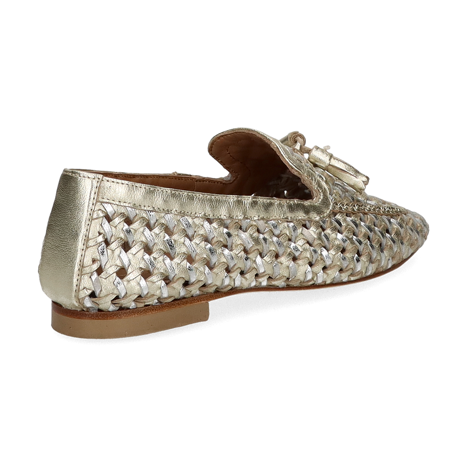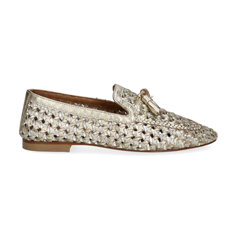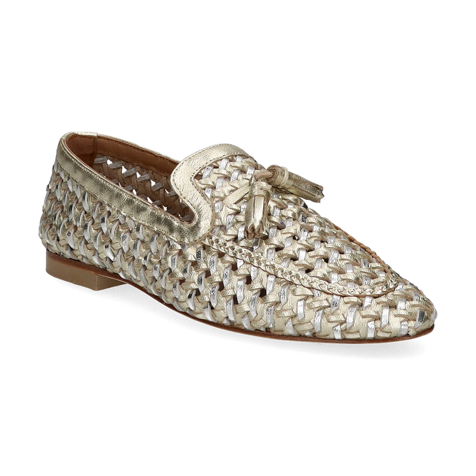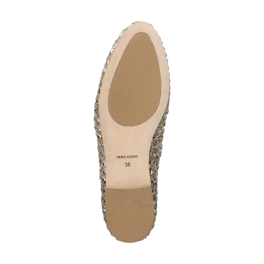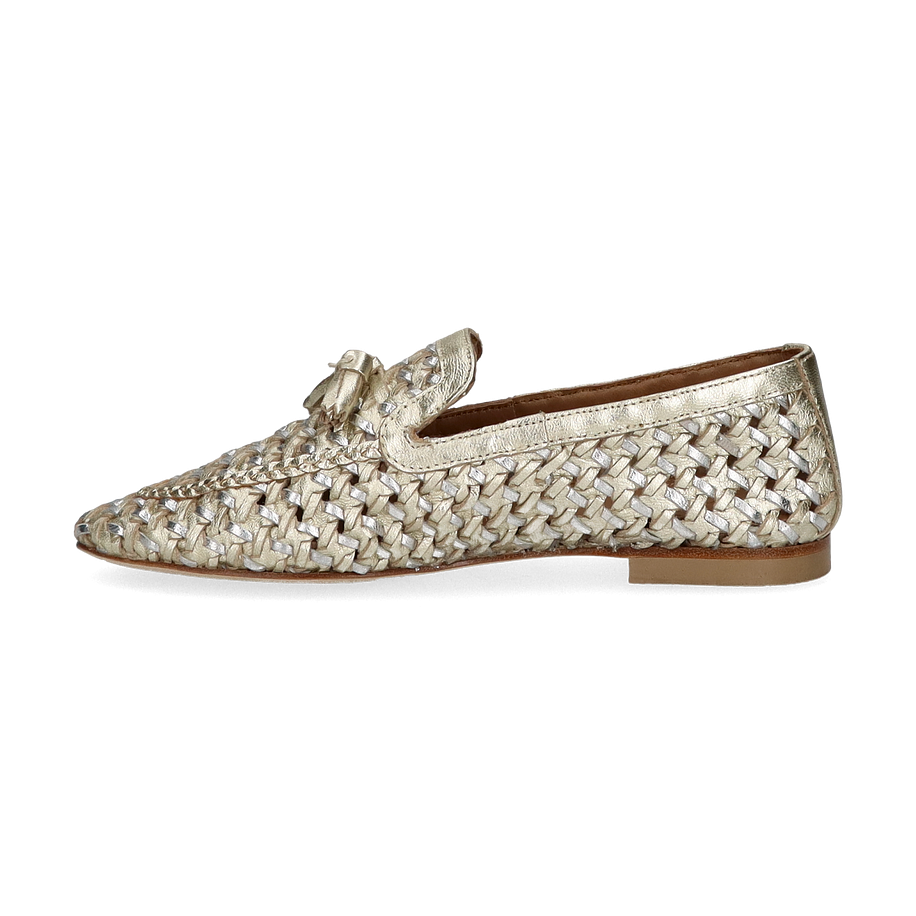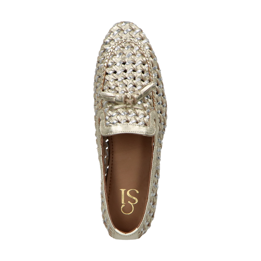 Entdecken Sie den eleganten Slipper von Si in einem luxuriösen Goldton, der einen Hauch von Glamour in Ihre Garderobe bringt. Das geflochtene Design aus hochwertigem Leder verleiht diesem Schuh eine raffinierte Textur und sorgt für einen einzigartigen Look. Der dezente Absatz von 1 cm bietet Komfort, während die dekorative Schleife dem Slipper eine feminine Note verleiht. Perfekt für Damen, die Stil und Komfort schätzen.