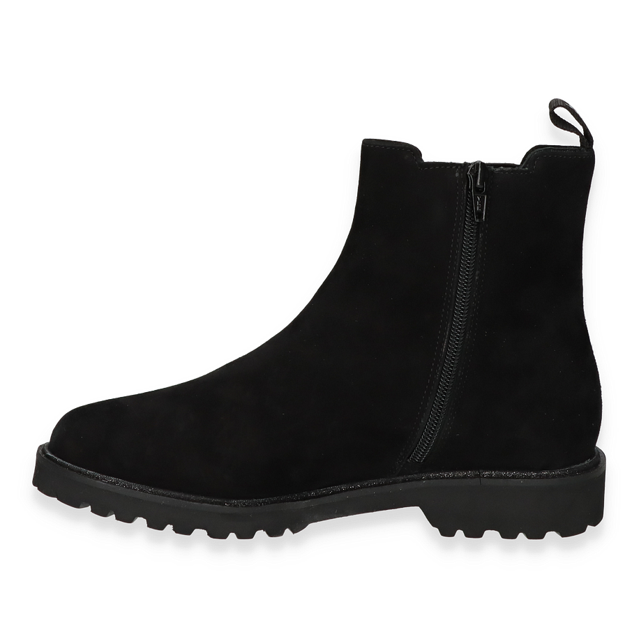 Preis inkl. MwSt.Die Sioux Boots in elegantem Schwarz sind ein stilvolles und vielseitiges Accessoire für Damen. Das Obermaterial aus Leder verleiht den Schuhen einen edlen Look, während die robuste Gummisohle für sicheren Halt sorgt. Der seitliche Reißverschluss und die elastischen Einsätze ermöglichen ein einfaches An- und Ausziehen und bieten gleichzeitig eine bequeme Passform. Mit einer Absatzhöhe von 3 cm bieten diese Boots den perfekten Mix aus Komfort und Stil. Die Innenmaterialien aus Leder und Textil sorgen für ein angenehmes Tragegefühl. Die Leder-/Textil-Innensohle bietet zusätzlichen Komfort, während das Wechselfußbett Flexibilität und Anpassungsfähigkeit gewährleistet. Diese Boots sind ideal für den täglichen Gebrauch und passen zu verschiedenen Outfits, von lässig bis elegant. Perfekt für die moderne Frau, die Wert auf Qualität und Stil legt.