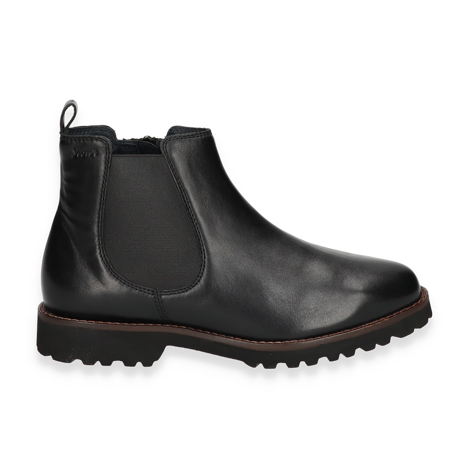 Preis inkl. MwSt.Diese praktischen Sioux MEREDITH Boots für Damen sind eine tolle Wahl für klassische Alltagslooks, denn dank des schlichten Designs und der feinen Qualität werden Sie die Boots gar nicht mehr ausziehen wollen! Die schicken Damenschuhe sind aus hochwertigem schwarzem Leder gefertigt und verfügen über robuste profilstarke Gummisohlen, welche jeden Schritt zum Genuss machen. Auch die für Chelsea Boots typischen Gummieinsätze an den Seiten sind bei diesen schwarzen Sioux Boots vorhanden und erleichtern das An- udn Ausziehen der Damenschuhe. Perfekt, wenn es morgens einmal schnell gehen muss, Sie aber trotzdem gut angezogen sein möchten.