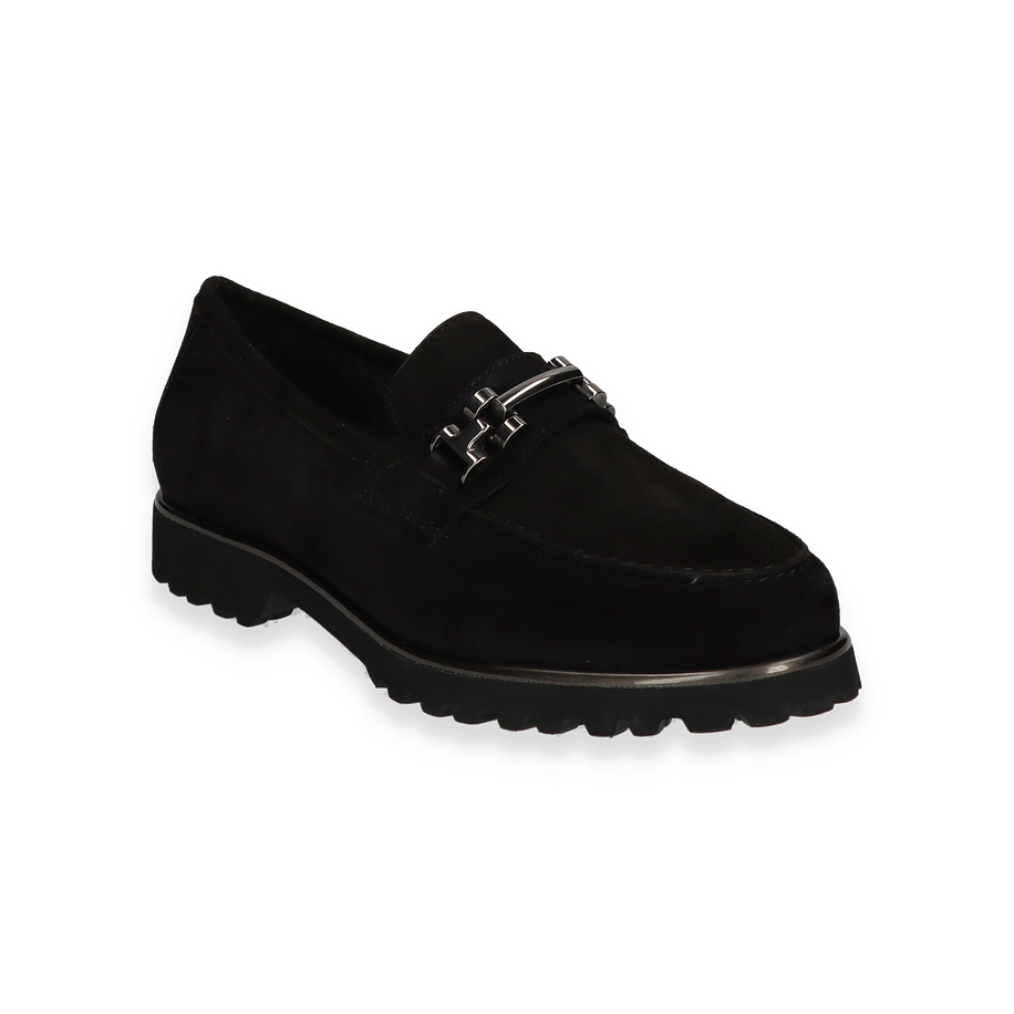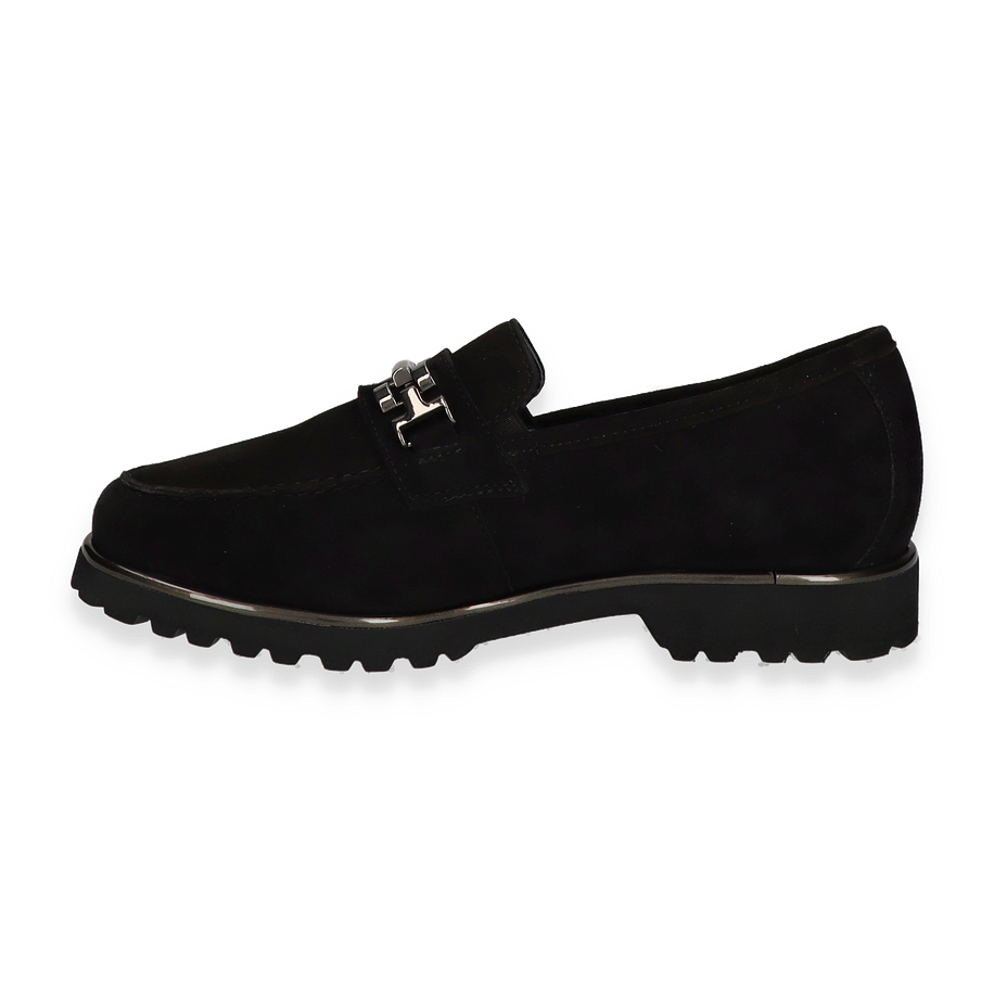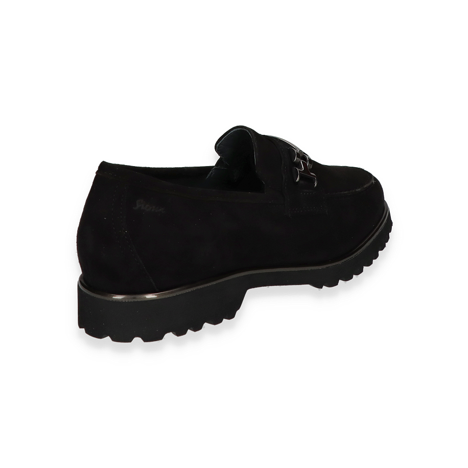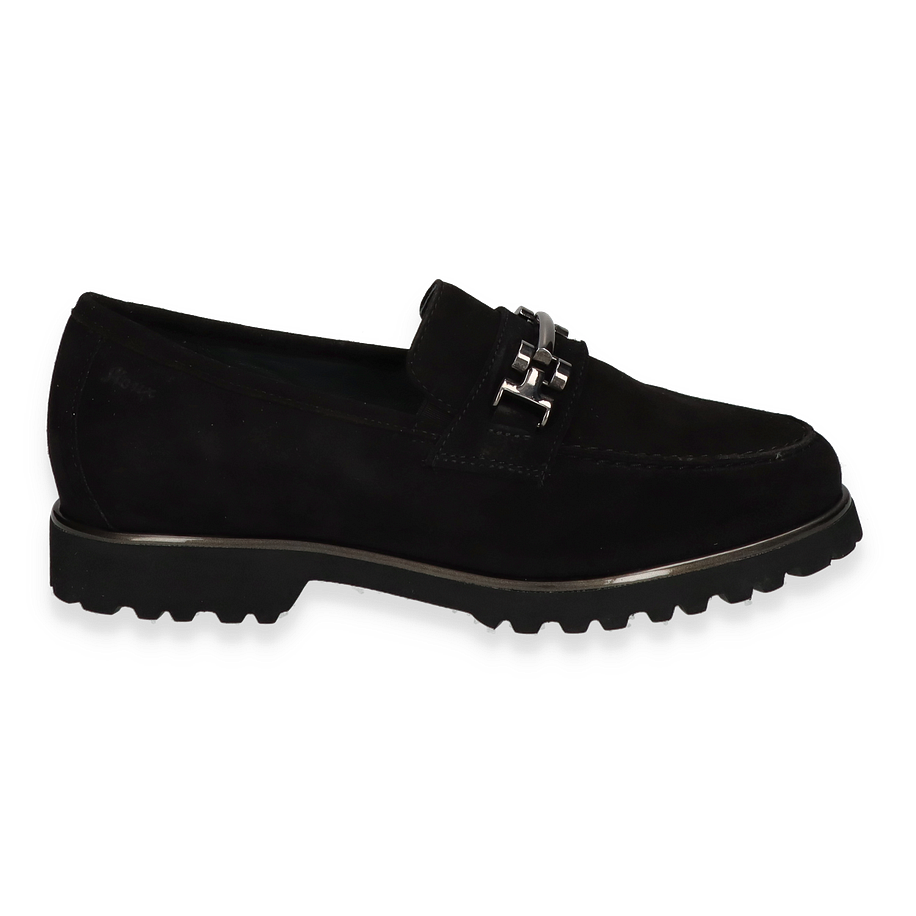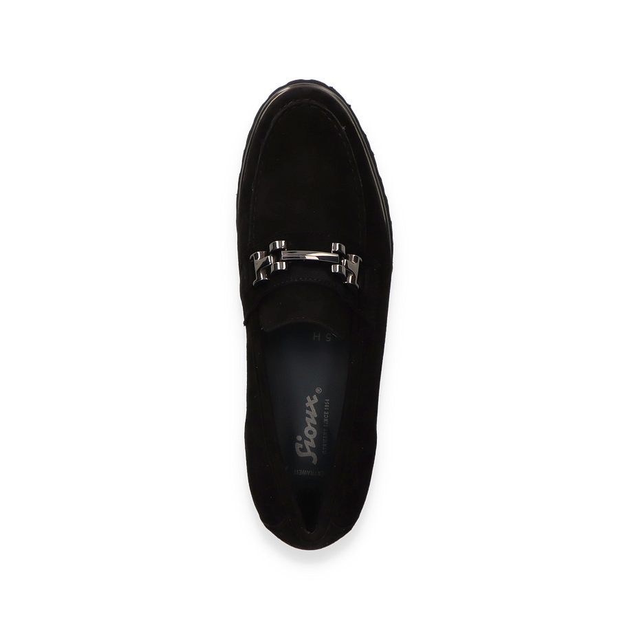 Der Sioux Slipper MEREDITH für Damen präsentiert sich in elegantem Schwarz und überzeugt durch sein stilvolles Design. Die hochwertige Lederoberfläche verleiht dem Schuh eine edle Optik, während die markante Metallschnalle einen modernen Akzent setzt. Die robuste Gummisohle bietet nicht nur einen sicheren Halt, sondern unterstreicht auch den zeitlosen Look dieses Slippers. Ideal für den Alltag oder besondere Anlässe, kombiniert der MEREDITH Komfort mit Stil.