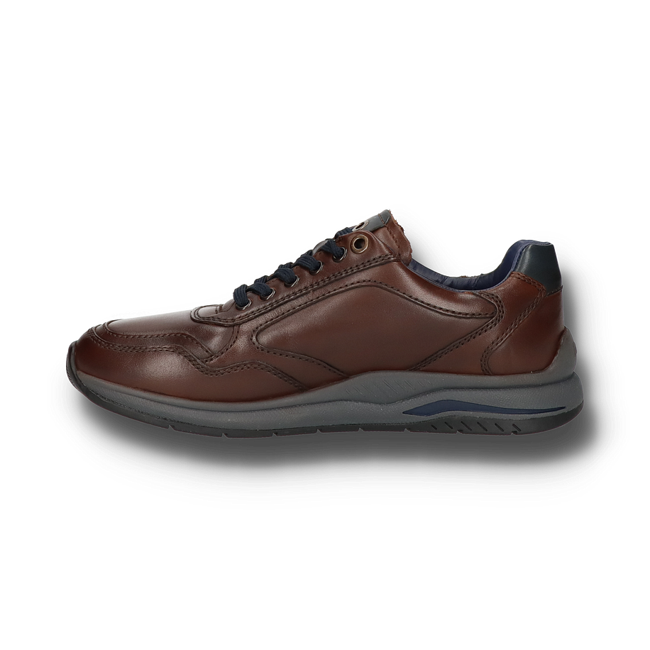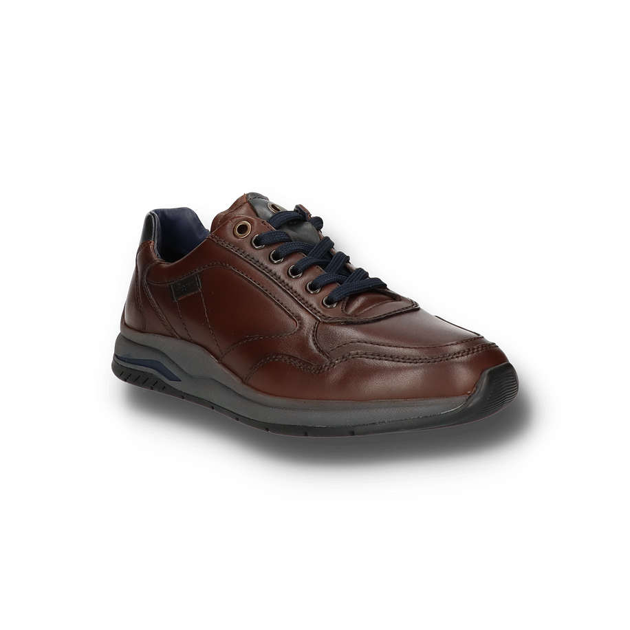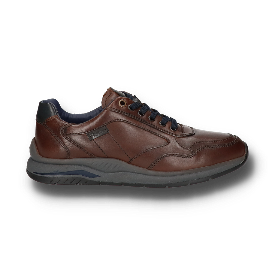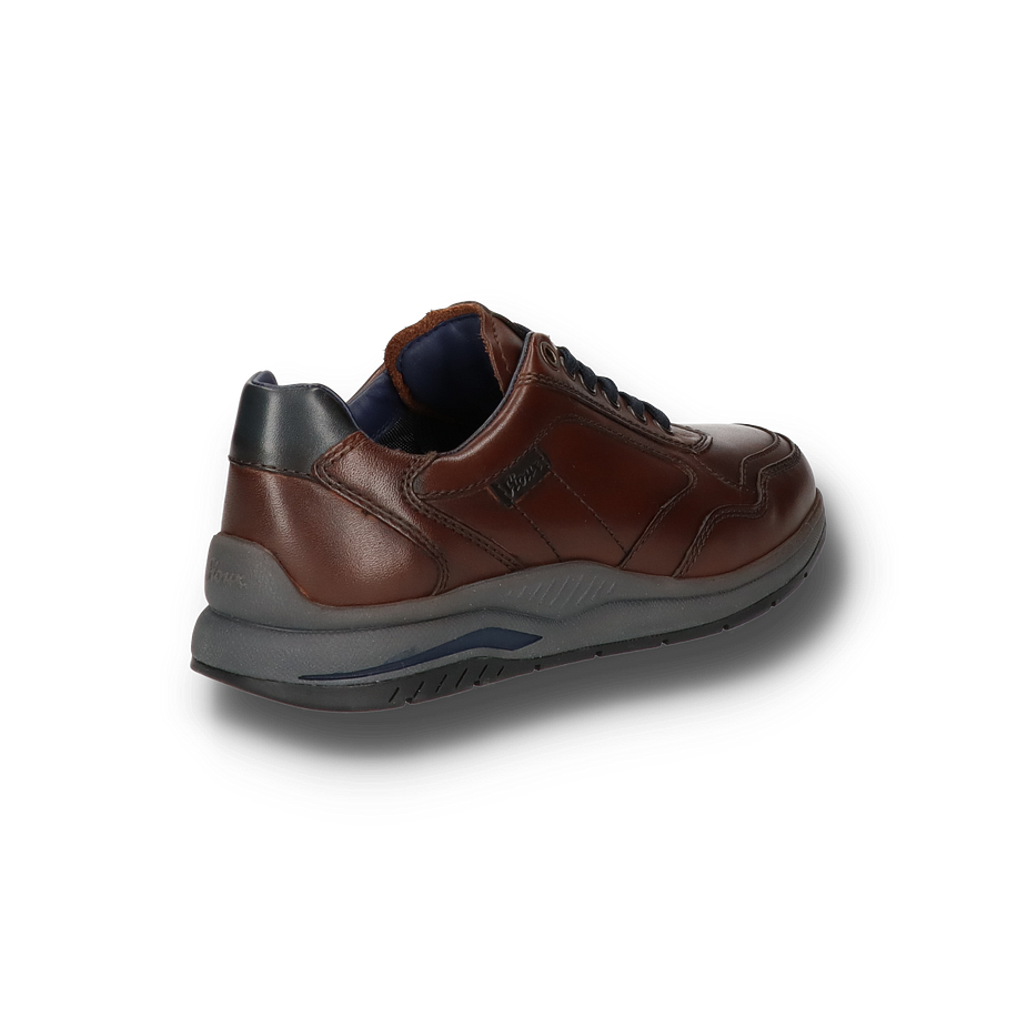 Der Sioux Sneaker TURIBO für Herren in der Farbe Dunkelbraun besticht durch sein elegantes und zugleich sportliches Design. Das Obermaterial aus hochwertigem Leder verleiht dem Schuh eine edle Optik, während die sorgfältig gearbeiteten Nähte und die dunkelblauen Schnürsenkel stilvolle Akzente setzen. Die Kombination aus dunkelbraunem Leder und der robusten Gummisohle in Grau und Blau sorgt für einen modernen Look, der sowohl zu legeren als auch zu gehobenen Outfits passt. Der TURIBO Sneaker bietet nicht nur optisch, sondern auch funktional höchsten Komfort. Mit einer Absatzhöhe von 3,5 cm und einem Innenmaterial aus Leder und Textil garantiert er ein angenehmes Tragegefühl. Die Lederinnensohle und die flexible Gummisohle bieten optimalen Halt und Dämpfung bei jedem Schritt. Dieser Schuh vereint Stil und Bequemlichkeit und ist die perfekte Wahl für anspruchsvolle Herren.