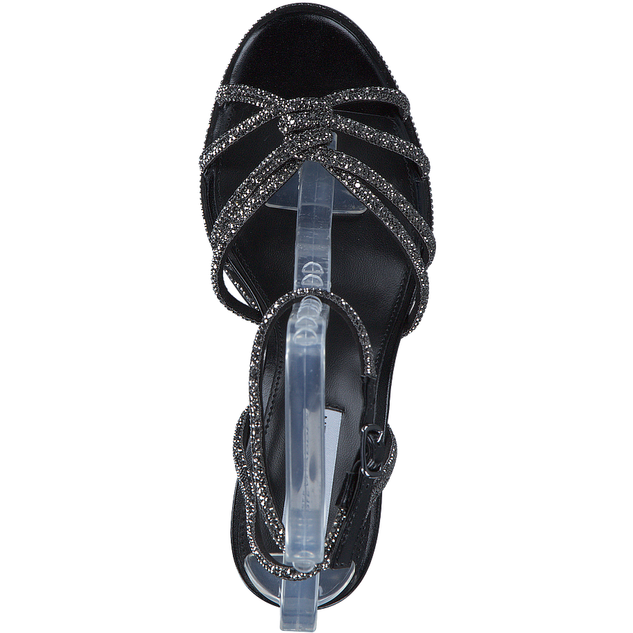 Preis inkl. MwSt.Entdecken Sie die elegante Kailyn Sandaletten von Steve Madden, perfekt für Damen, die einen Hauch von Glamour suchen. Diese schwarzfarbenen Schuhe verfügen über einen beeindruckenden Glitzereffekt, der sicherlich Aufmerksamkeit erregt. Mit einer Absatzhöhe von 9,5 cm bieten sie eine schmeichelhafte Silhouette, ohne Kompromisse beim Komfort einzugehen. Das Obermaterial besteht aus Textil und sonstigem Material, während das Innenfutter und die Innensohle aus sonstigem Material für zusätzlichen Komfort sorgen. Die robuste Gummisohle gewährleistet Langlebigkeit und Rutschfestigkeit. Steigern Sie Ihren Stil mit den Kailyn Sandaletten von Steve Madden.
