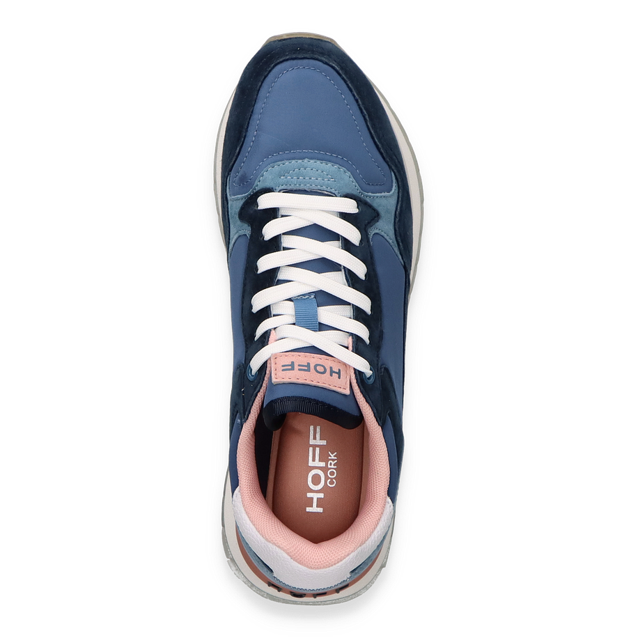 Der HOFF Sneaker "CORK" für Damen präsentiert sich in einem eleganten dunkelblauen Design, das durch subtile Farbakzente in Rosa und Weiß ergänzt wird. Die Kombination aus Leder und Textil im Obermaterial verleiht dem Schuh nicht nur eine ansprechende Optik, sondern auch eine angenehme Haptik. Die sorgfältige Verarbeitung und die harmonische Farbgestaltung machen diesen Sneaker zu einem stilvollen Begleiter für den Alltag.