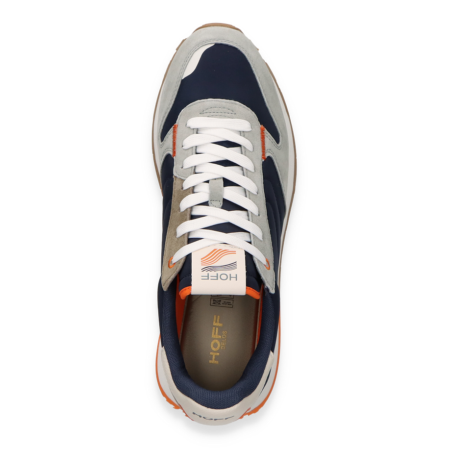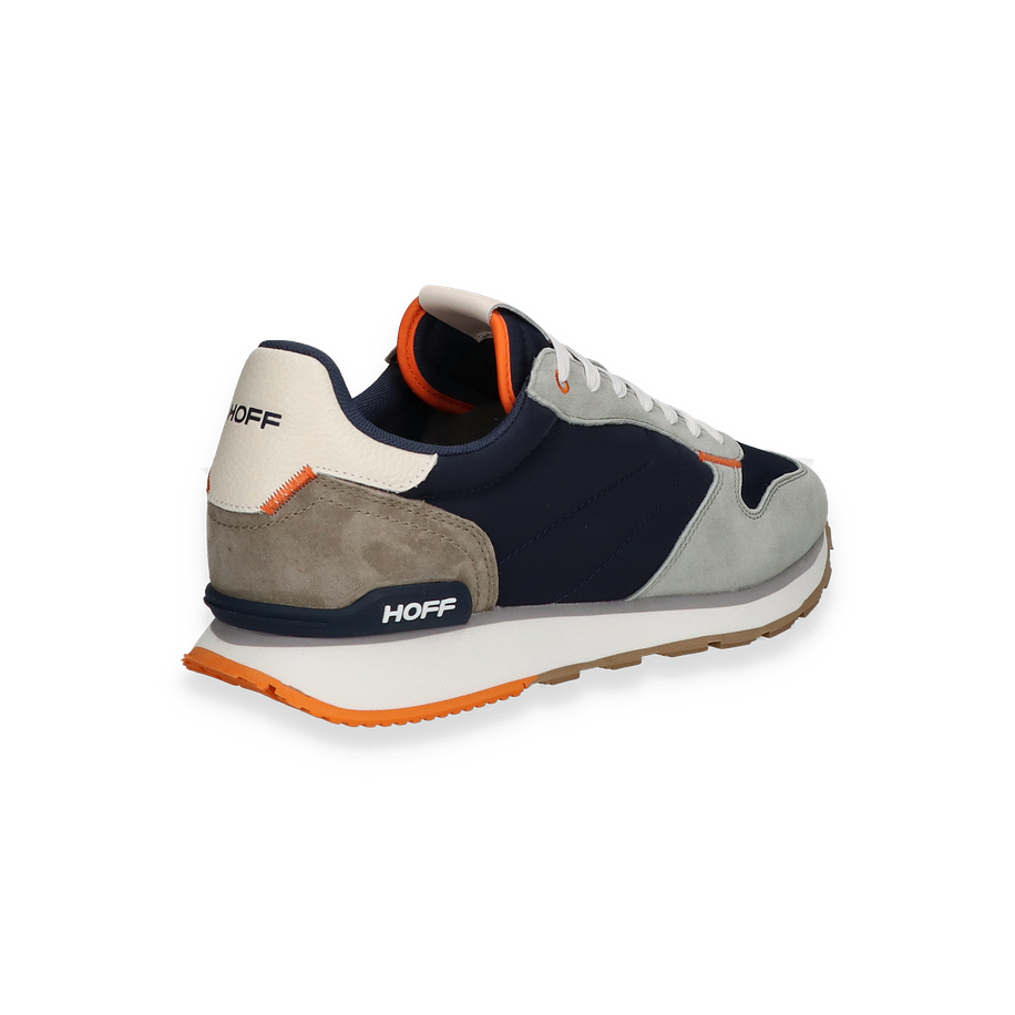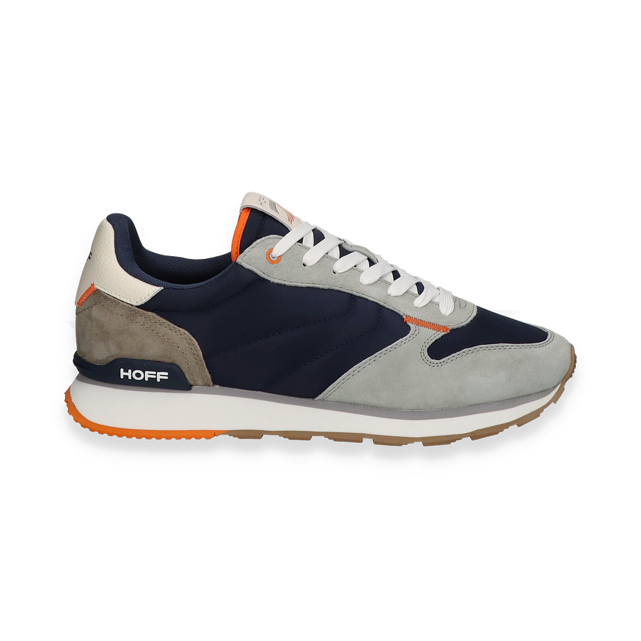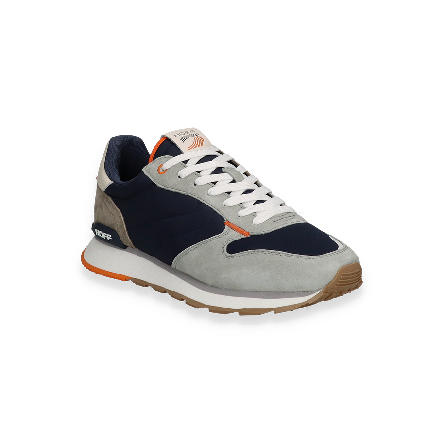 Preis inkl. MwSt.Der Sneaker DELOS von HOFF präsentiert sich in einer stilvollen Kombination aus dunkelblauem und grauem Leder/Textil. Die harmonische Farbgebung wird durch subtile Akzente in Orange ergänzt, die dem Schuh eine moderne Note verleihen. Das Design ist sportlich und dennoch elegant, ideal für Herren, die Wert auf Stil und Komfort legen. Die weiße Schnürung und das markante HOFF-Logo runden das Gesamtbild ab und machen den Sneaker zu einem vielseitigen Begleiter für verschiedene Anlässe.