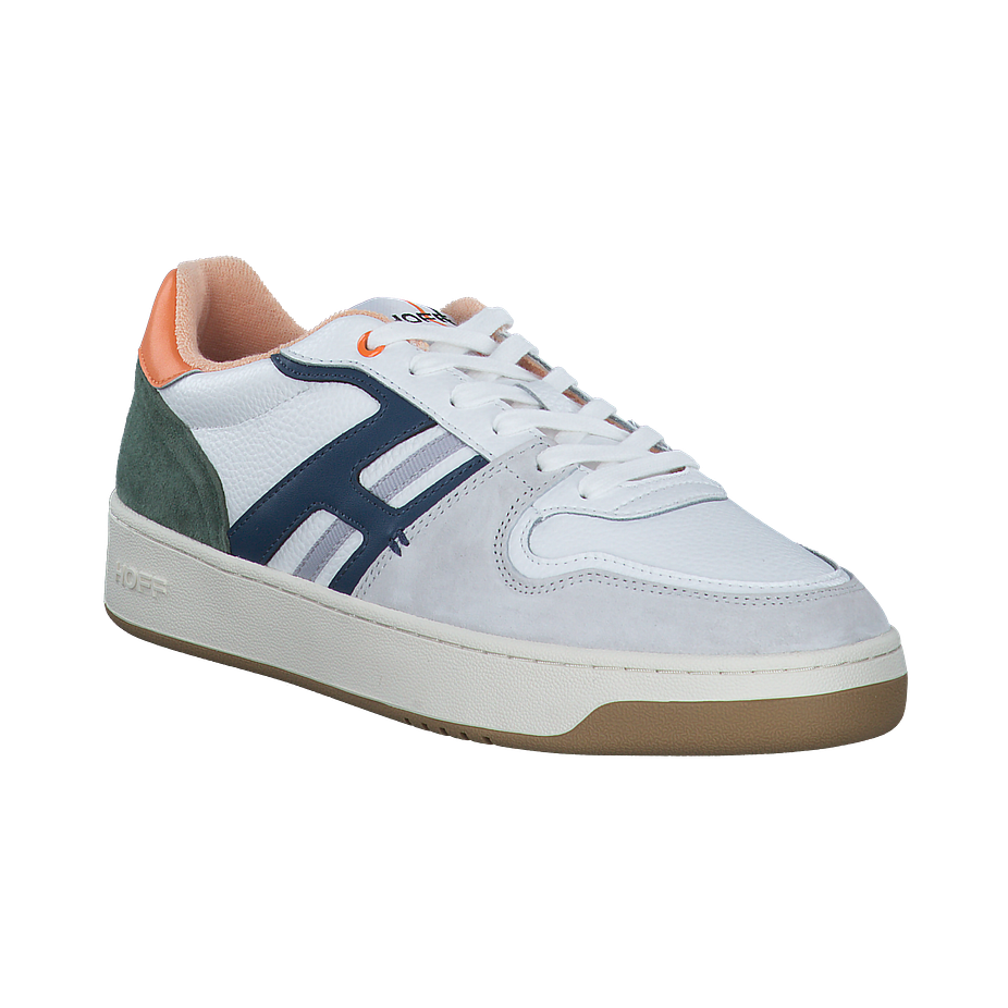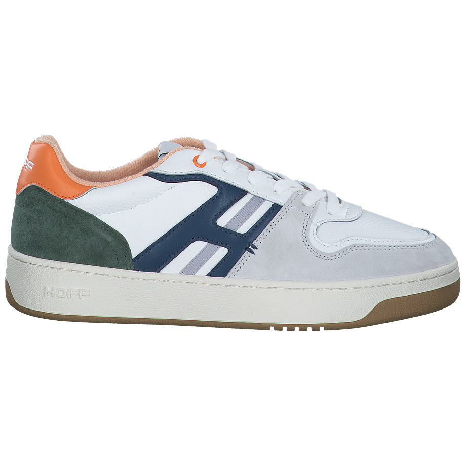 Preis inkl. MwSt.Entdecken Sie den Metropole Sneaker von Hoff, ein Must-Have für Herren. Dieser Schuh besticht durch sein weißes und buntes Design, das auf dem hochwertigen Leder-Obermaterial zur Geltung kommt. Mit einer Absatzhöhe von 3,5 cm bietet er einen angenehmen Tragekomfort. Das Innenfutter und die Innensohle aus Textil sorgen für ein weiches Fußbett, während die Gummisohle für Rutschfestigkeit sorgt. Der Metropole Sneaker ist nicht nur modisch, sondern auch praktisch und langlebig. Ideal für den modernen Mann, der Wert auf Stil und Komfort legt.