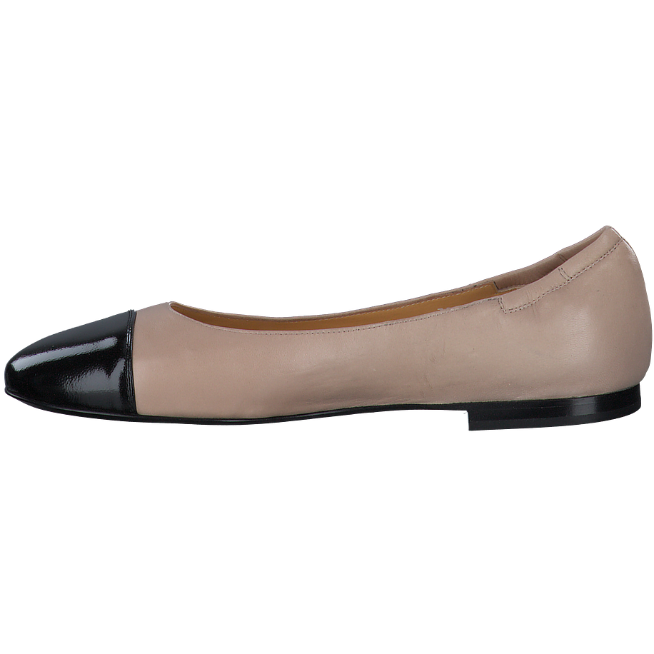 Entdecken Sie die eleganten Ballerinas für Damen von Trumans in den Farben beige und schwarz. Diese Schuhe zeichnen sich durch ihre hochwertige Verarbeitung aus Leder aus, sowohl beim Obermaterial als auch bei der Innensohle und dem Futter. Die Sohle besteht aus einer Kombination von Leder und Gummi, was für zusätzlichen Komfort und Langlebigkeit sorgt. Mit einer Absatzhöhe von 1 cm bieten diese Ballerinas eine angenehme Tragehöhe. Ein besonderes Detail ist die schwarze Lackkappe, die dem Design einen edlen Touch verleiht. Tragen Sie Trumans, tragen Sie Qualität.