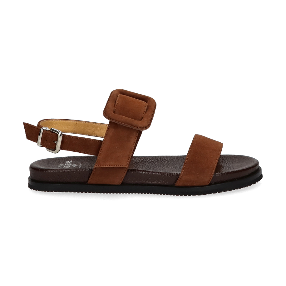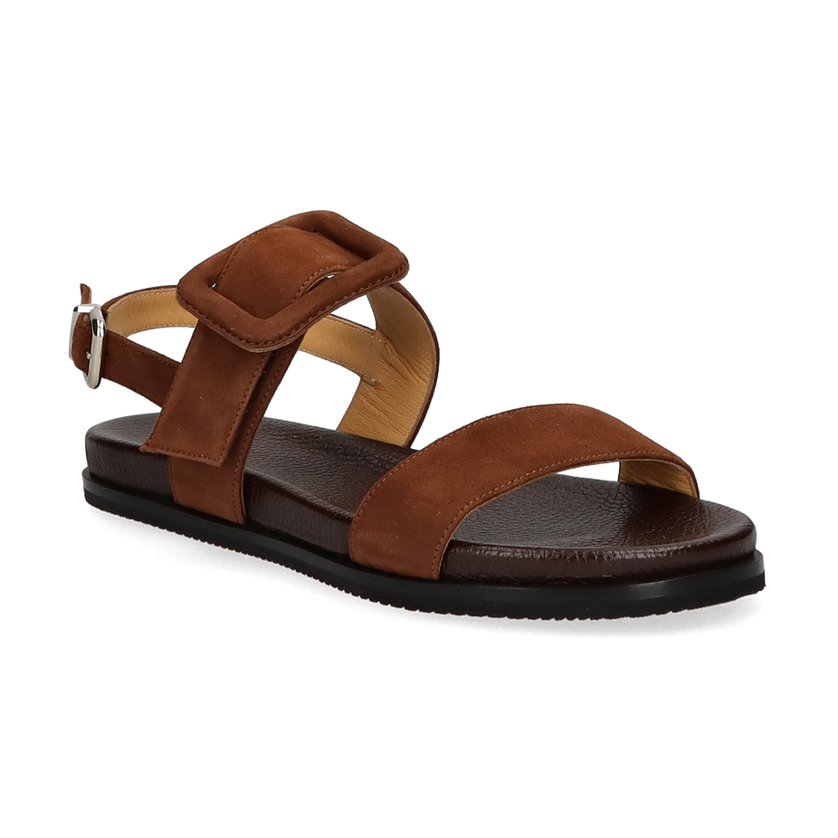 Preis inkl. MwSt.Entdecken Sie die eleganten Sandalen für Damen, die durch ihr minimalistisches Design und die warme, braune Farbgebung bestechen. Die Sandalen verfügen über einen breiten Riemen mit einer markanten Schnalle, die nicht nur für einen sicheren Halt sorgt, sondern auch einen stilvollen Akzent setzt. Die flache Sohle und das weiche Fußbett bieten optimalen Komfort für den ganzen Tag. Diese Sandalen sind die perfekte Ergänzung für Ihre Sommergarderobe und lassen sich vielseitig kombinieren.