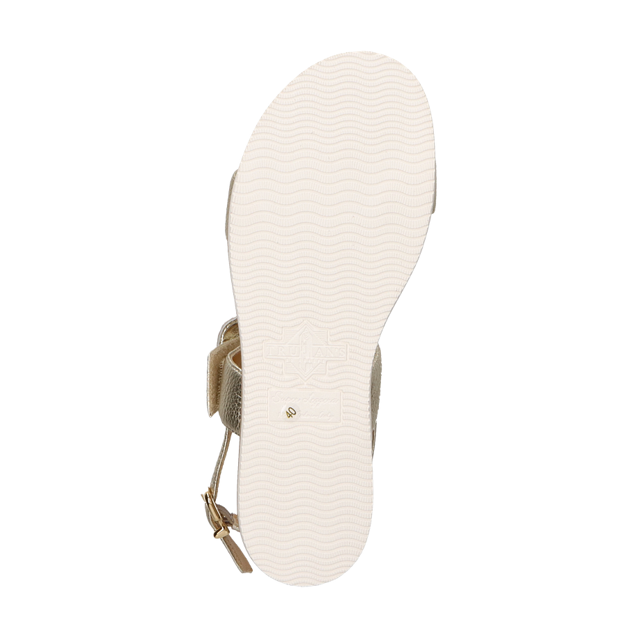 Diese eleganten Sandalen für Damen vereinen Stil und Komfort in einem ansprechenden Design. Der goldene Metallic-Look verleiht jedem Outfit einen Hauch von Glamour, während die breiten Riemen mit einer markanten Schnalle für einen sicheren Halt sorgen. Die offene Zehenpartie und das verstellbare Fersenband bieten eine perfekte Passform und machen diese Sandalen ideal für warme Sommertage.