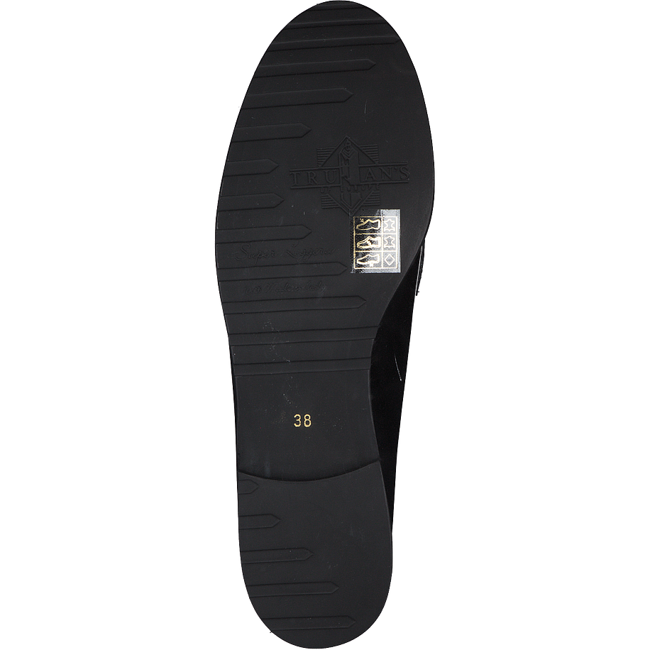 Feminin und elegant kommen diese wundervollen Trumans Slipper für Damen daher und bieten so die perfekte Alternative für all' Ihre smarten Freizeit- und Office-Looks. Das hochwertige schwarze Leder lässt die Damenschuhe besonders hochwertig erscheinen, da es über einen feinen Glanz verfügt und somit dem Paar einen überaus edlen Schimmer verleiht. Die robusten schwarzen Gummisohlen runden den klassischen Schnitt der schwarzen Trumans Slipper perfekt ab und bieten dabei einen traumhaften Tragekomfort bei jedem Schritt. Die optimalen Schuhe für alle, die Komfort gern mit einem modischen Design vereinen möchten!
