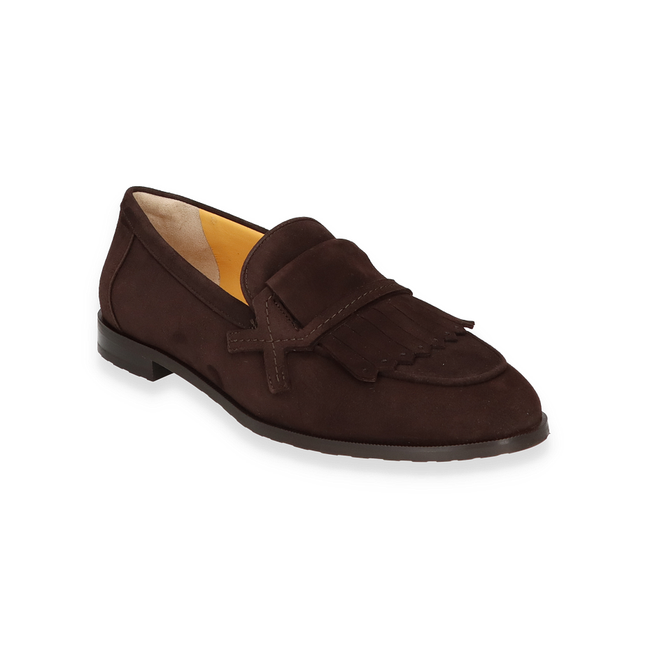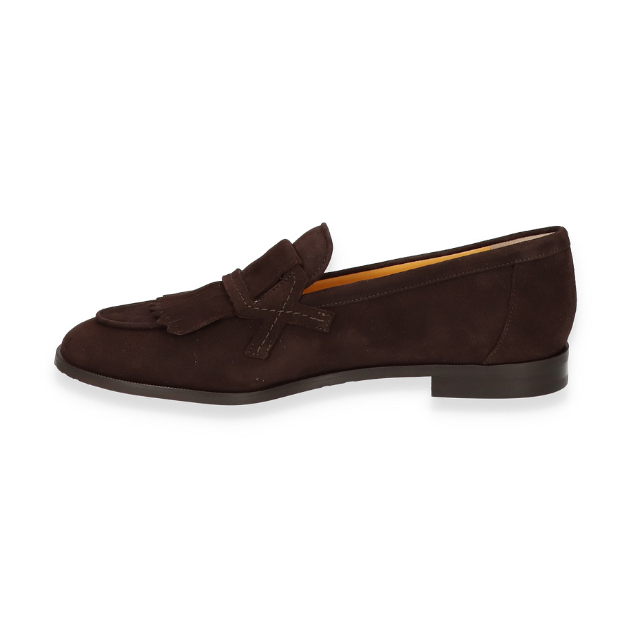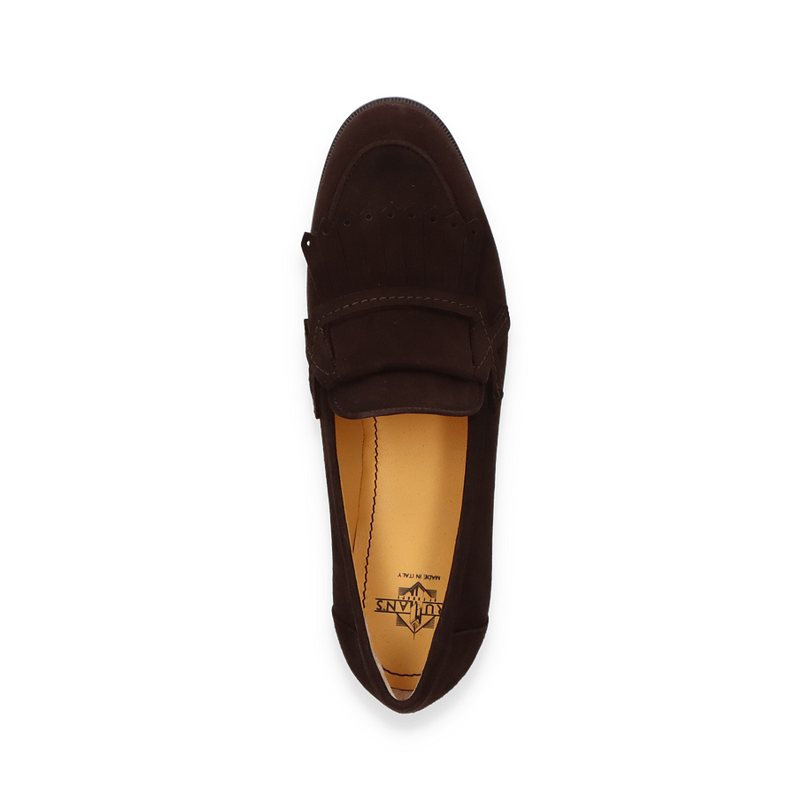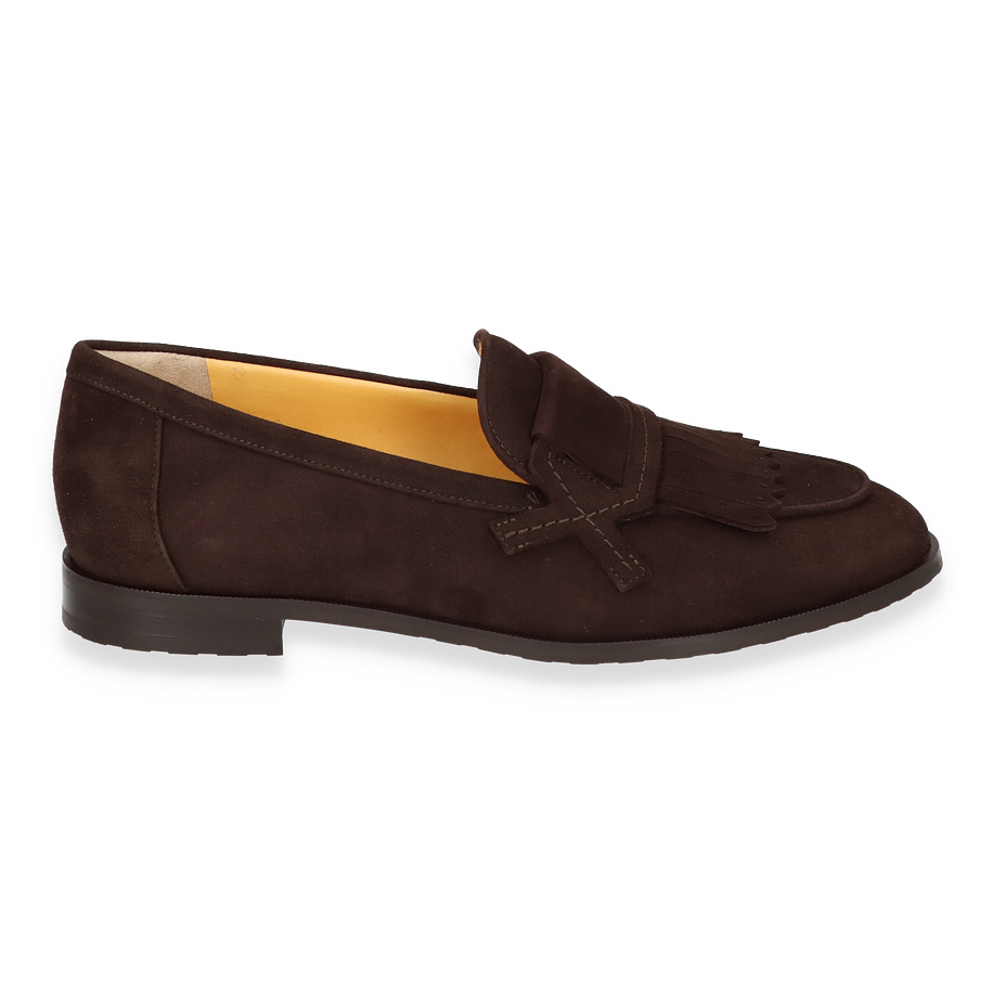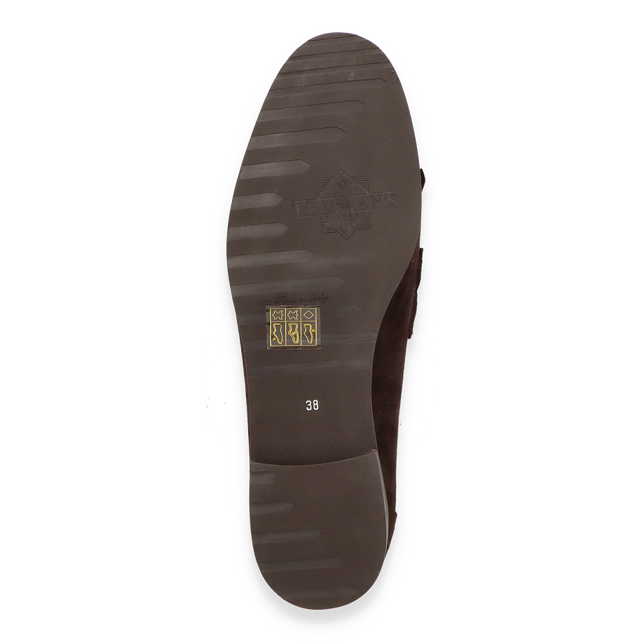 Entdecken Sie die eleganten Slipper für Damen von Trumans in einem tiefen Dunkelbraun, die durch ihr raffiniertes Design und die hochwertige Verarbeitung überzeugen. Der Schuh besticht durch seine dezente Fransenverzierung und die feinen Nähte, die ihm eine zeitlose Eleganz verleihen. Die flache Absatzhöhe von 2 cm sorgt für einen angenehmen Tragekomfort, während das weiche Lederfutter ein luxuriöses Gefühl vermittelt. Diese Slipper sind die perfekte Wahl für stilbewusste Frauen, die Wert auf Qualität und Design legen.