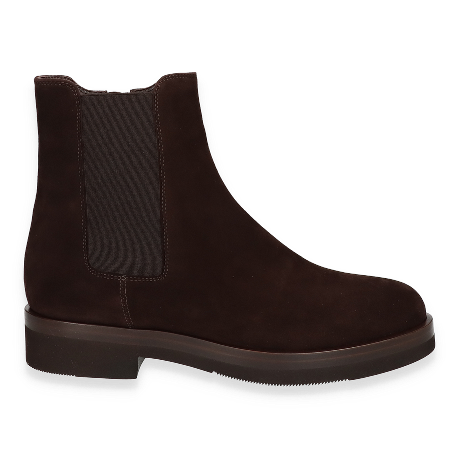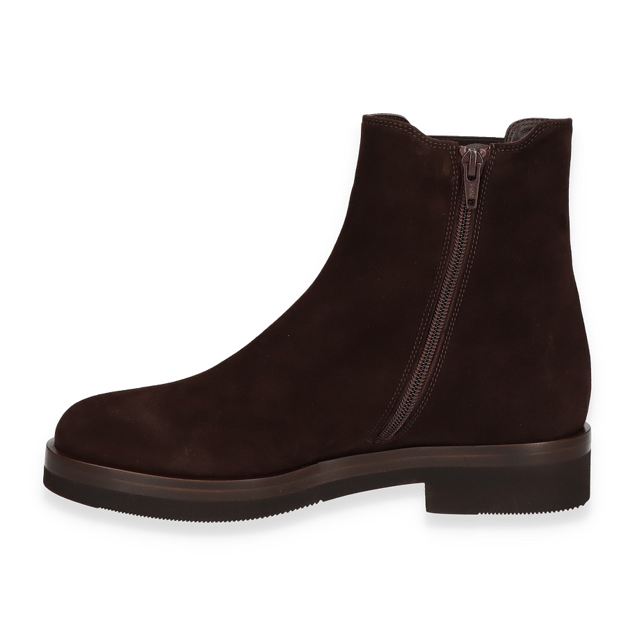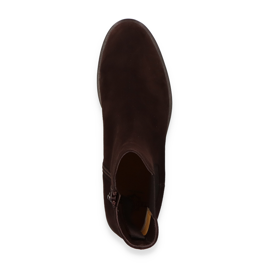 Entdecken Sie die eleganten Trumans Boots für Damen in einem tiefen Dunkelbraun, die durch ihr minimalistisches Design und die hochwertige Verarbeitung überzeugen. Der 16 cm hohe Schaft und der 4 cm hohe Absatz verleihen diesen Stiefeletten eine zeitlose Silhouette, die sowohl für den Alltag als auch für besondere Anlässe geeignet ist. Der seitliche Reißverschluss sorgt für ein einfaches An- und Ausziehen, während die elastischen Einsätze zusätzlichen Komfort bieten.