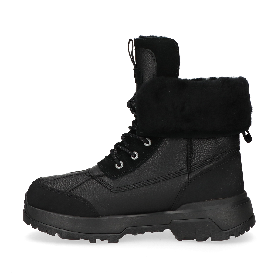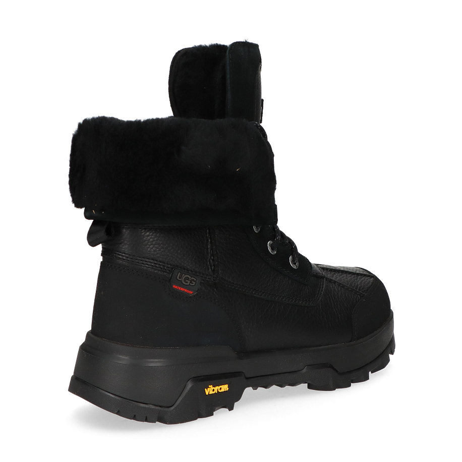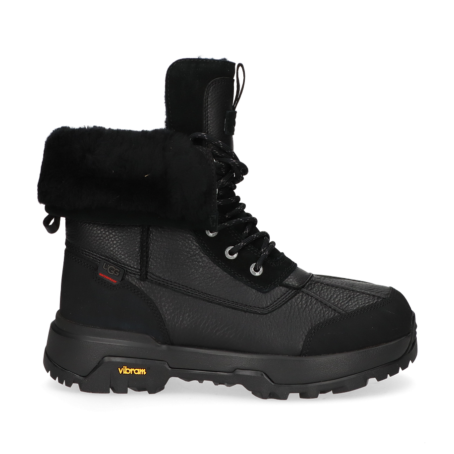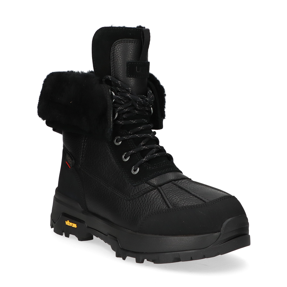 Entdecken Sie den ADIRONDACK Winterboot von UGG, ein Meisterwerk an Funktionalität und Stil für Herren. In elegantem Schwarz gehalten, vereint dieser Schuh robustes Leder mit einem luxuriösen Lammfellfutter, das für außergewöhnlichen Komfort und Wärme sorgt. Die markante Silhouette und die sorgfältig gearbeiteten Details machen diesen Boot zu einem unverzichtbaren Begleiter in der kalten Jahreszeit. Die strapazierfähige Gummisohle bietet optimalen Halt auf rutschigen Oberflächen, während die 5 cm hohe Ferse einen Hauch von Eleganz verleiht.