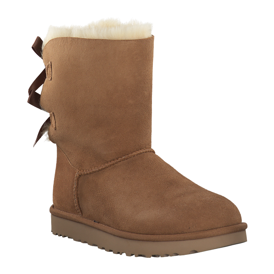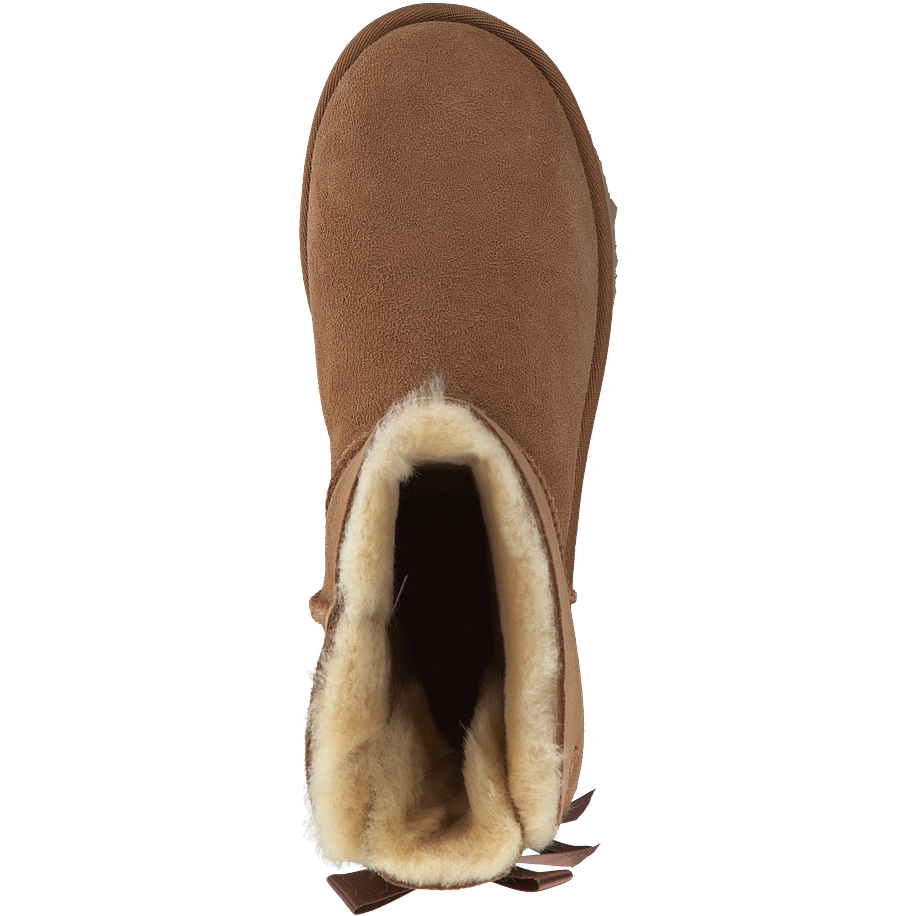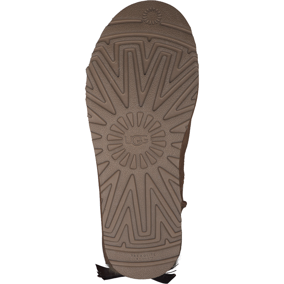 Der Klassiker von UGG darf auch in dieser Saison wieder in keinem Schuhschrank einer Frau fehlen! Besonders niedlich ist dieses tolle Modell aus hellbraunem Leder durch die süßen Schleifen auf der Rückseite des Schafts. Ihre Füße bleiben wie für UGG bekannt dank des hochwertigen Innenfutters aus Lammfell schön warm. Ein bequemer Schuh für schicke Frauen!