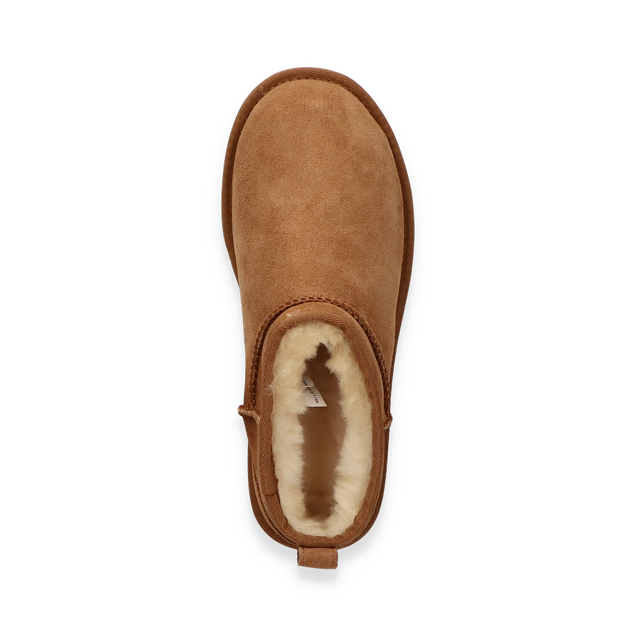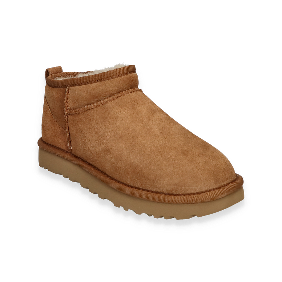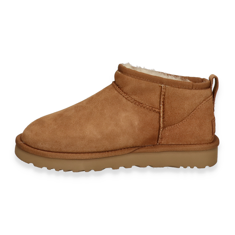Entdecken Sie den "Classic ultra mini" Winterstiefel von UGG für Damen in elegantem Braun. Dieser stilvolle Stiefel besticht durch seine hochwertige Verarbeitung und Materialien. Das Obermaterial aus Leder verleiht dem Schuh eine edle Optik, während das Innenfutter aus Lammfell für unvergleichliche Wärme und Komfort sorgt. Die Textil-Innensohle bietet zusätzlichen Tragekomfort, und die Gummisohle garantiert sicheren Halt auf verschiedenen Untergründen. Mit einer Sohlenhöhe von 3 cm ist dieser Stiefel nicht nur modisch, sondern auch praktisch für den täglichen Gebrauch. Perfekt für kalte Wintertage, bietet der Classic ultra mini von UGG eine ideale Kombination aus Stil und Funktionalität.
