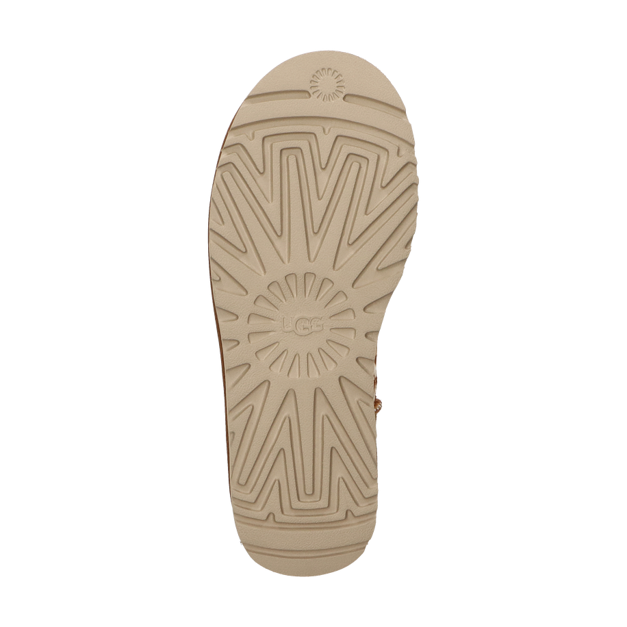 Die CLASSIC ULTRA MINI PLAINS von UGG präsentieren sich in einem auffälligen Beige/Leo-Design, das jedem Winteroutfit eine stilvolle Note verleiht. Diese Winterboots für Damen kombinieren Eleganz und Komfort, ideal für die kalte Jahreszeit. Das Obermaterial aus hochwertigem Leder und Ponyfell sorgt für einen luxuriösen Look, während die warme Innenfütterung aus Wolle und Textil für wohlige Wärme sorgt. Mit einem dezenten Absatz von 2,5 cm bieten diese Boots sowohl Stil als auch Bequemlichkeit.