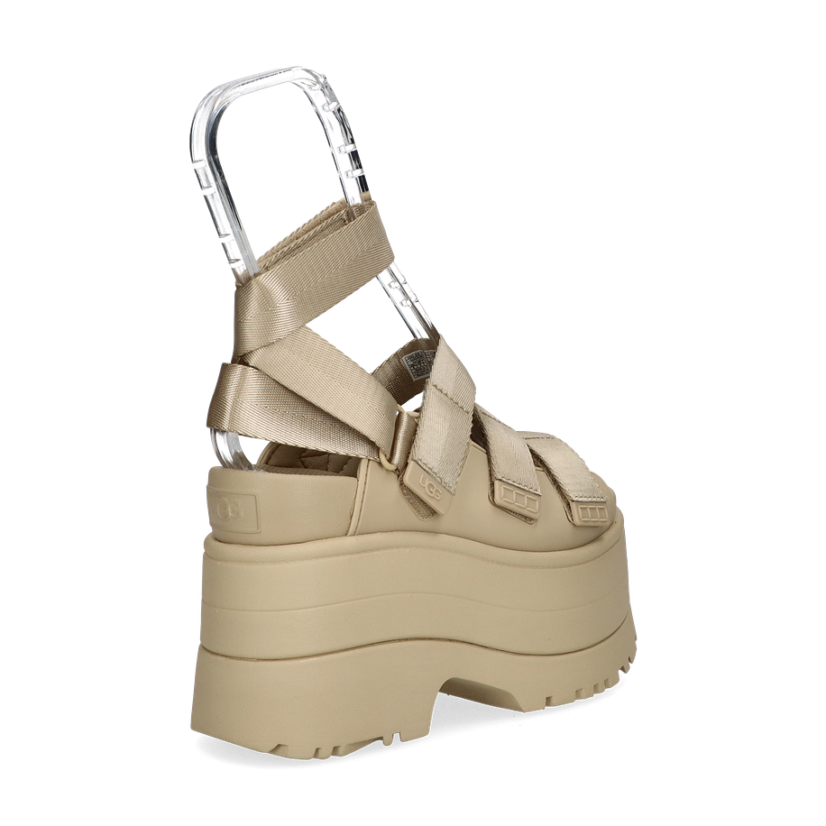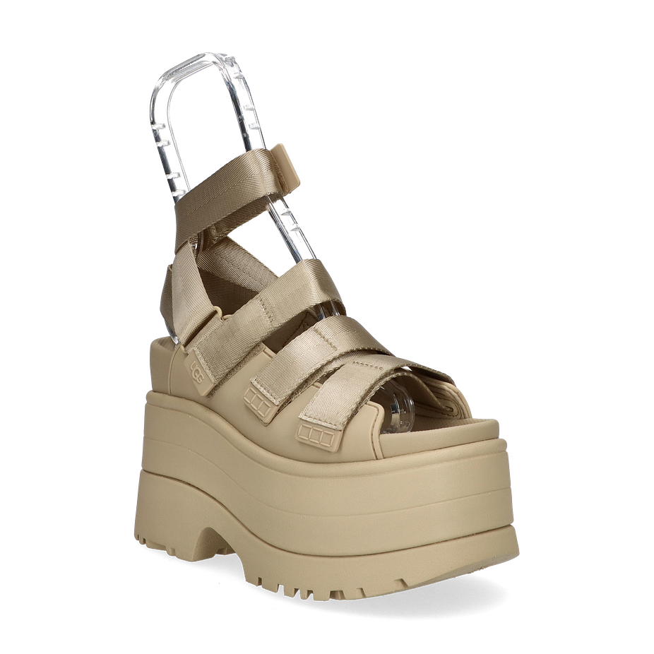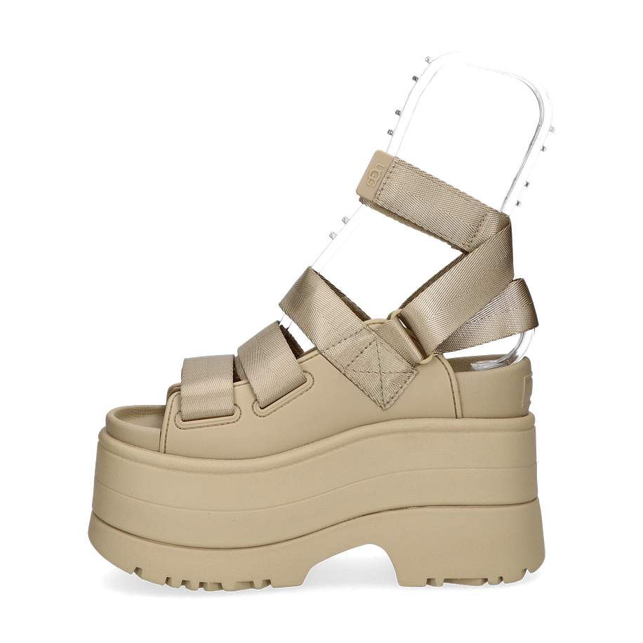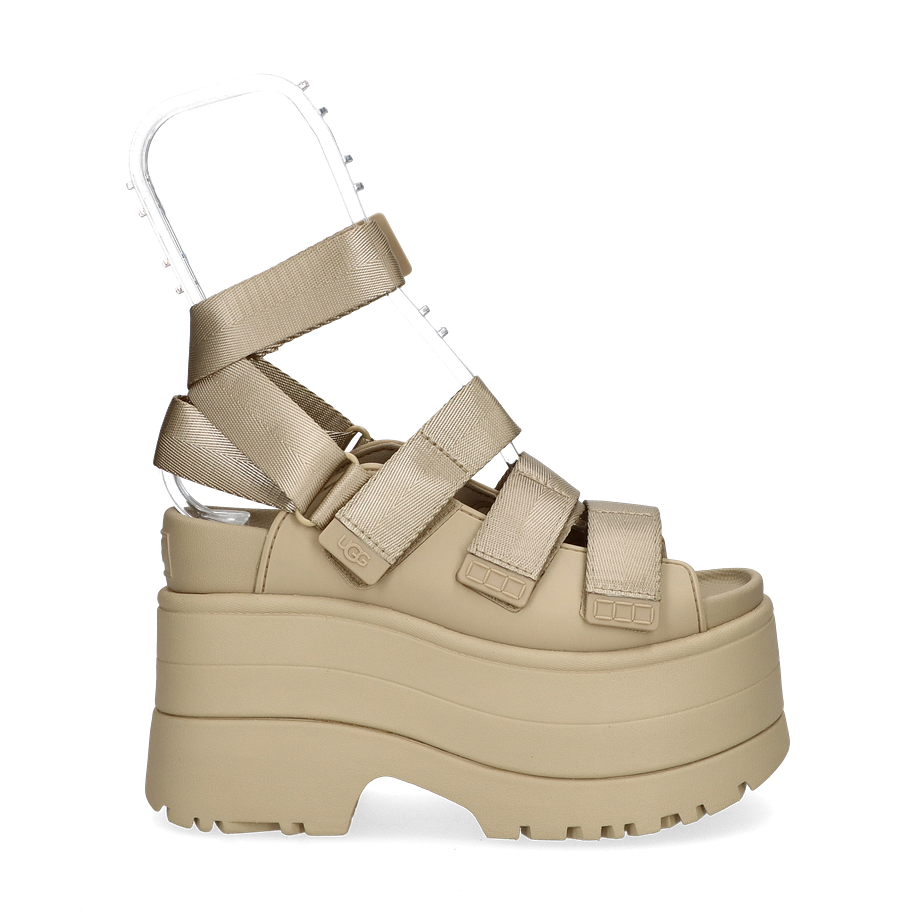 Entdecken Sie die stilvollen Plateau-Sandalen von UGG für Damen, die in einem eleganten Beige erstrahlen. Diese Schuhe zeichnen sich durch ihr modernes Design mit markanten Riemen aus, die sicheren Halt bieten. Der hohe Plateauabsatz von 11,5 cm verleiht Ihnen eine beeindruckende Höhe, während die 6,5 cm Plateauhöhe für zusätzlichen Komfort sorgt. Die Pantoletten sind ideal für modebewusste Frauen, die einen auffälligen Look schätzen.