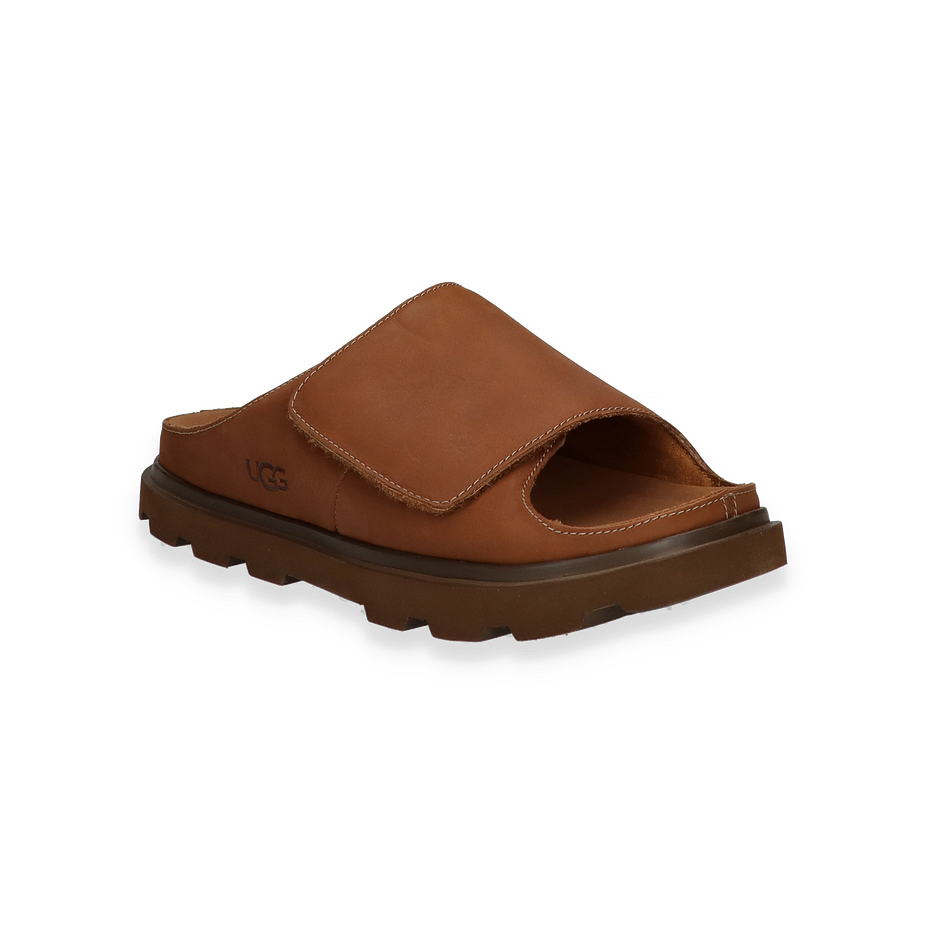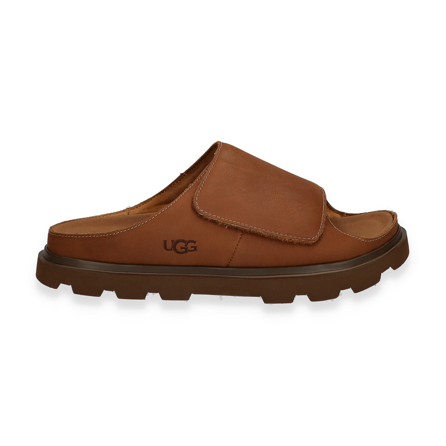 Entdecken Sie die stilvollen Pantoletten von UGG in einem eleganten mittelbraunen Farbton, der sich perfekt für Herren eignet. Das Obermaterial aus hochwertigem Leder verleiht diesen Schuhen eine edle Optik, während das Design mit der markanten UGG-Logo-Prägung einen Hauch von Luxus ausstrahlt. Die Pantoletten bieten einen komfortablen Sitz und sind ideal für entspannte Tage oder lässige Anlässe. Mit einem Absatz von 2 cm sorgen sie für eine dezente Erhöhung und einen modernen Look.