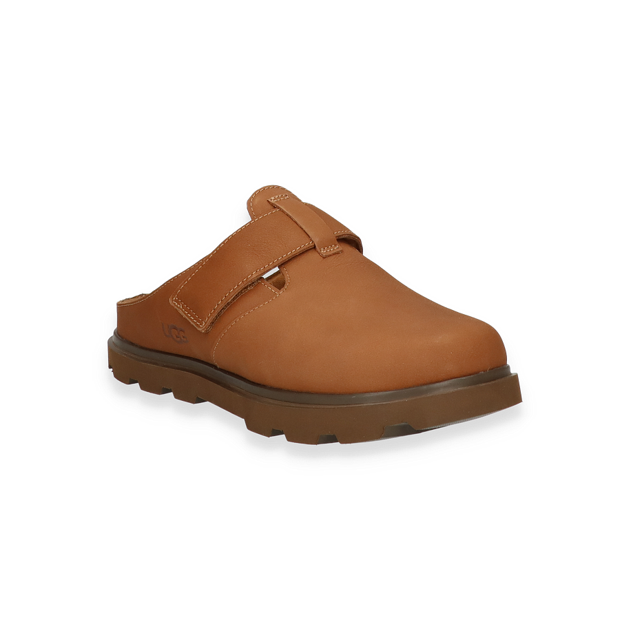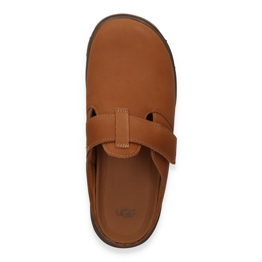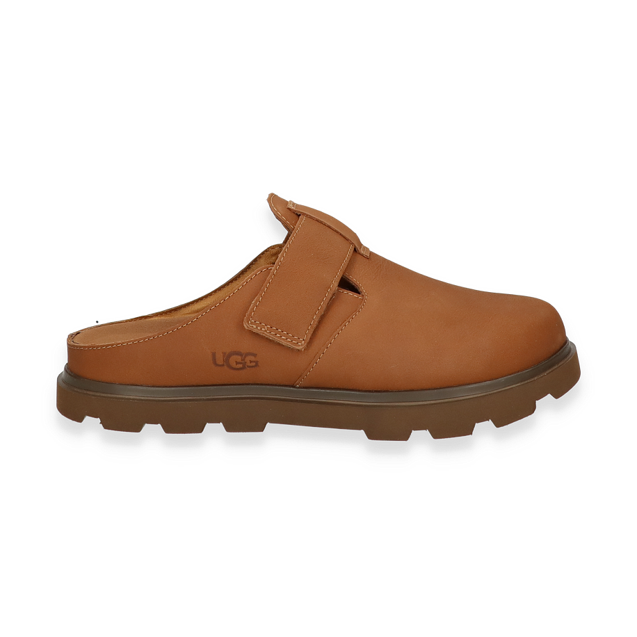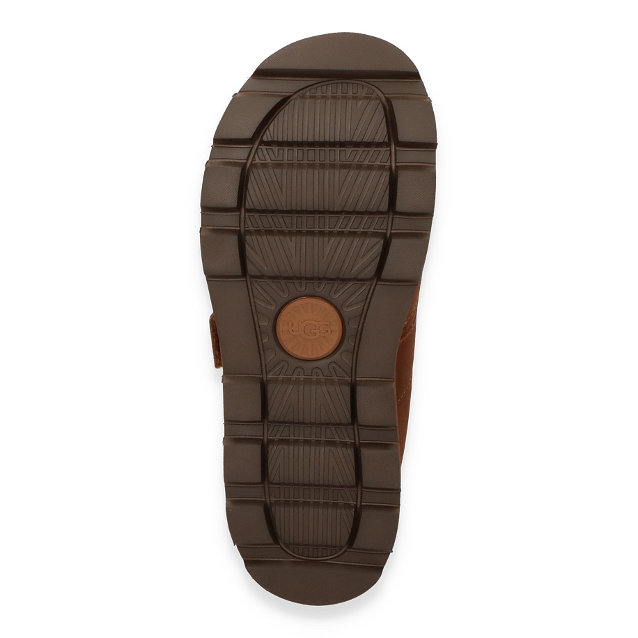 Entdecken Sie die stilvollen Pantoletten von UGG für Herren in einem eleganten Mittelbraun. Das Obermaterial aus hochwertigem Leder verleiht den Schuhen eine edle Optik und sorgt für Langlebigkeit. Der breite Riemen bietet nicht nur sicheren Halt, sondern unterstreicht auch das moderne Design. Die robuste Gummisohle mit markantem Profil garantiert Stabilität und Tragekomfort, während die dezente UGG-Prägung einen Hauch von Luxus vermittelt.