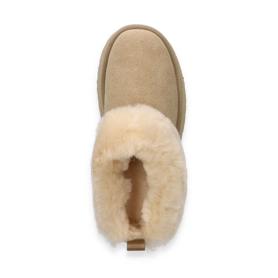 Die UGG TAZELLE Slipper für Damen präsentieren sich in einem eleganten Beige, das perfekt für die kalte Jahreszeit geeignet ist. Der Schuh besticht durch sein stilvolles Design mit einem warm gefütterten Lammfellkragen, der nicht nur optisch ansprechend ist, sondern auch für wohlige Wärme sorgt. Die Plateauhöhe von 4 cm verleiht dem Modell eine moderne Silhouette, während das hochwertige Leder als Obermaterial für Langlebigkeit und Komfort sorgt.