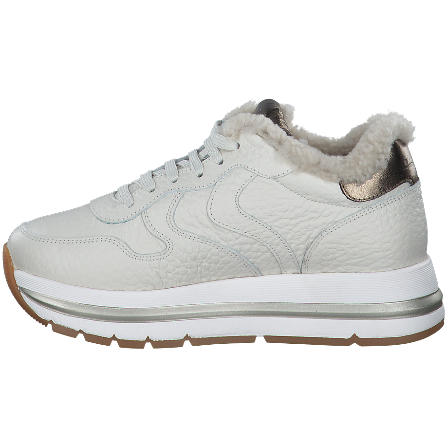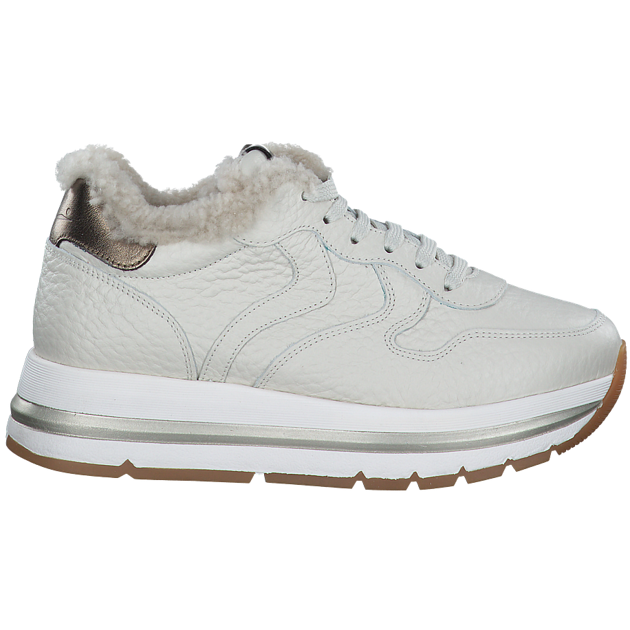 Vor allem in der kalten Jahreszeit wirken helle Schuhe wunderschön und sorgen garantiert für gute Laune und coole Looks, auch wenn das Wetter einmal nicht mitspielen sollte. Diese schicken Voile Blanche Sneaker sind aus einem feinen beigefarbenen Leder gefertigt, welches durch weiße Gummisohlen und silberne Akzente perfekt in Szene gesetzt wird. Dadurch wirken die Damenschuhe nicht nur besonders modern, sondern auch sehr feminin und elegant. Eine warme Lammfellfütterung verspricht warme und trockene Füße und zaubert so einen traumhaften Tragekomfort bei jedem Schritt. Auch die robusten Sohlen sorgen dafür, dass Sie sich in den beigen Voile Blanche Winterschuhen rundum wohl und sicher fühlen.