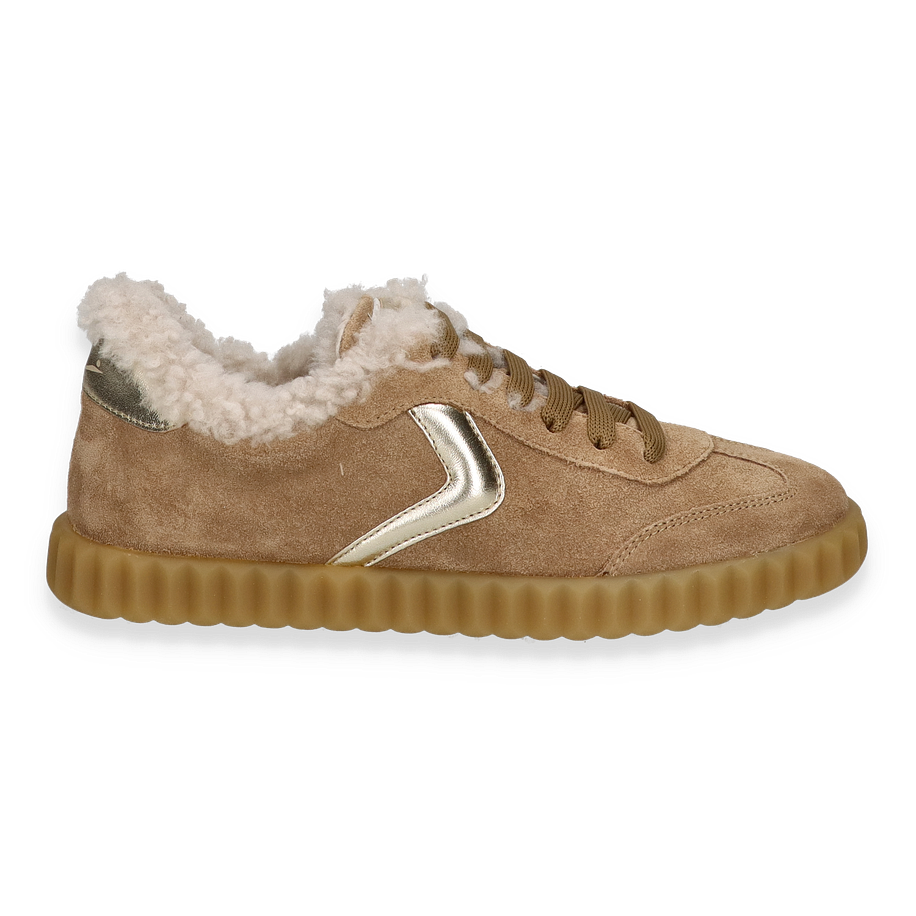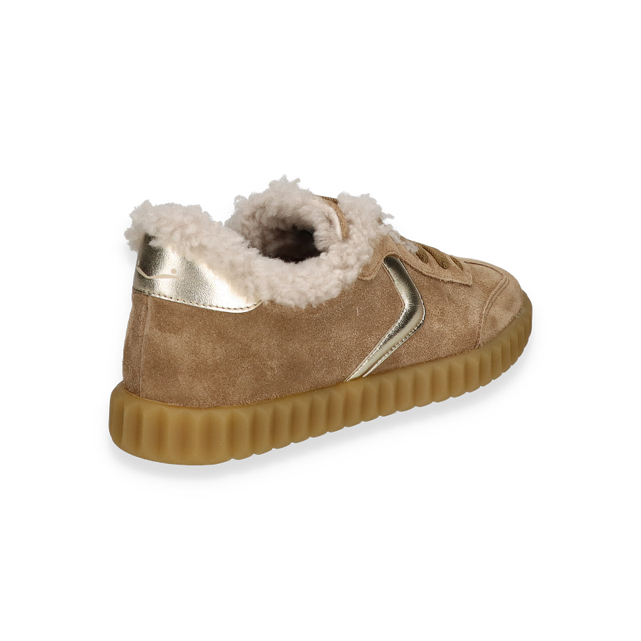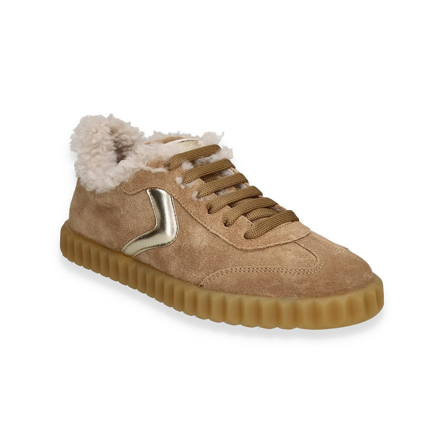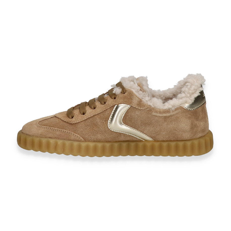 Der Voile Blanche Sneaker INES für Damen präsentiert sich in einem eleganten Hellbraun, das sowohl Stil als auch Komfort vereint. Das Obermaterial aus hochwertigem Leder verleiht dem Schuh eine edle Optik, während die goldenen Akzente einen Hauch von Glamour hinzufügen. Die flauschige Innenfütterung sorgt für Wärme und Gemütlichkeit, ideal für kältere Tage. Der Sneaker besticht durch seine robuste Gummisohle, die für einen sicheren Halt sorgt, und die sorgfältig gestalteten Details, die den Schuh zu einem echten Blickfang machen.