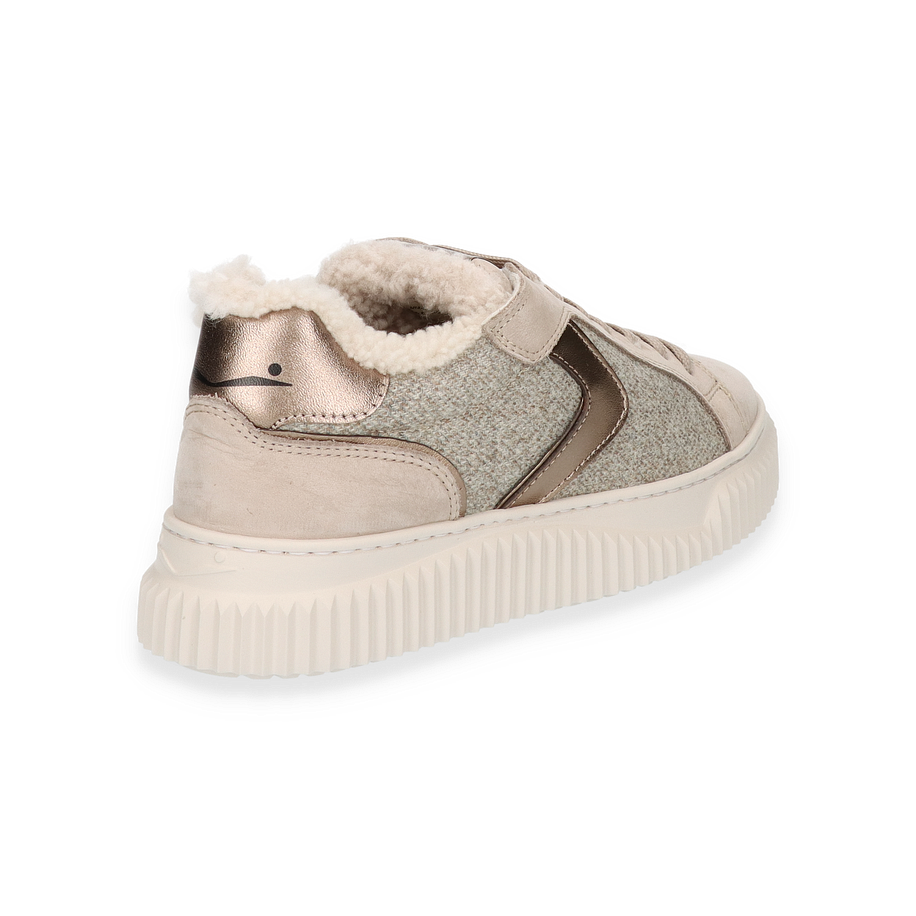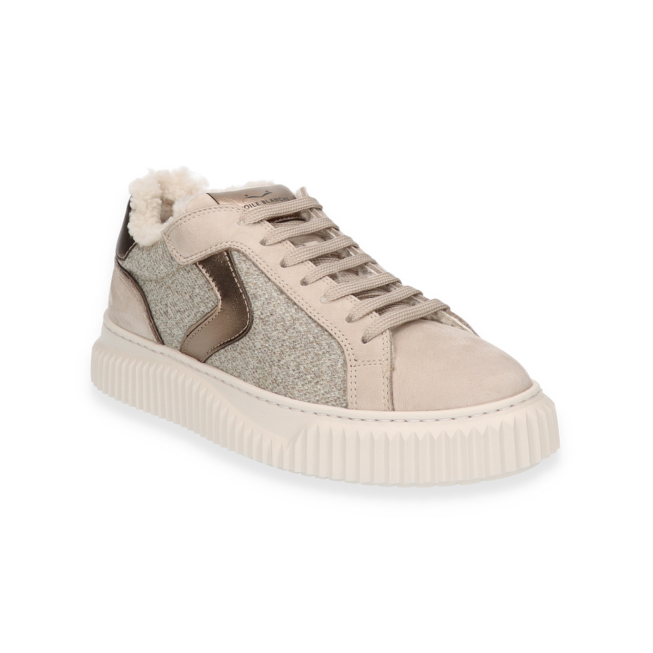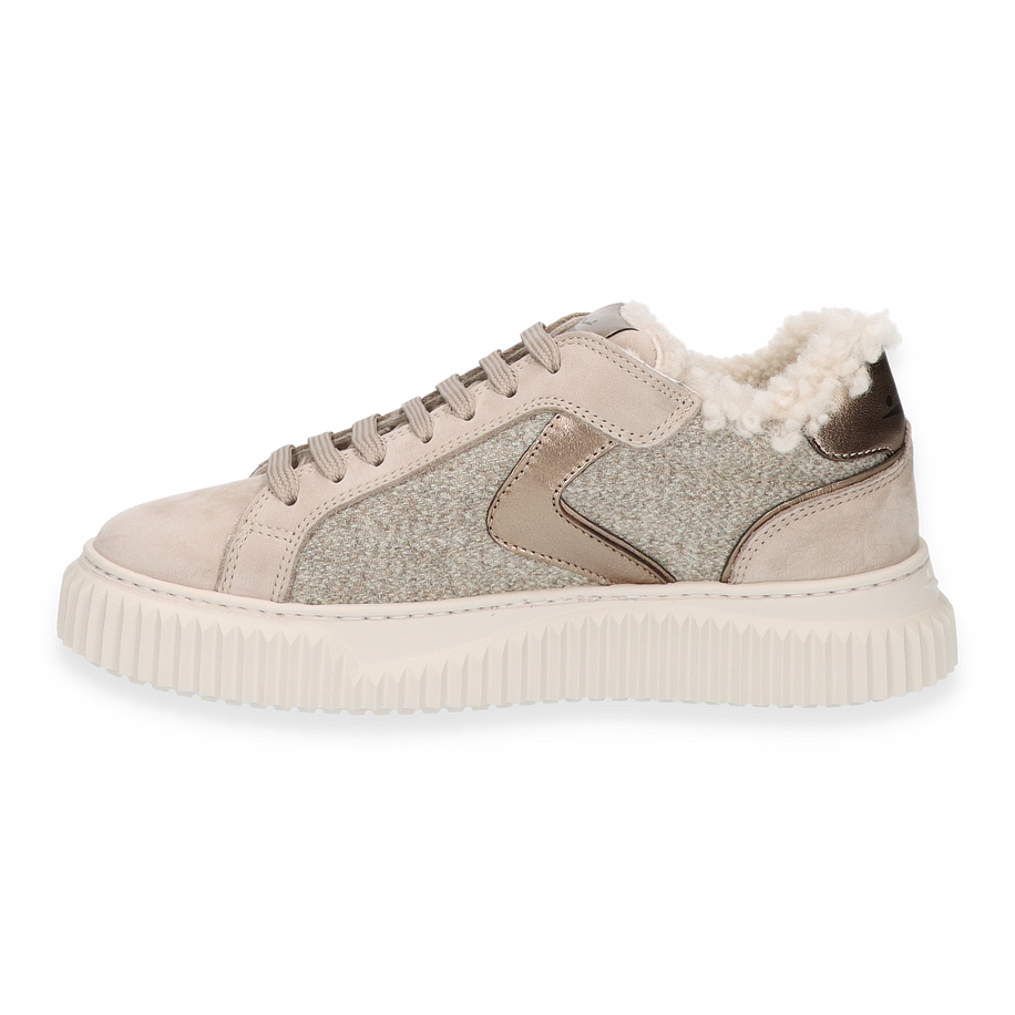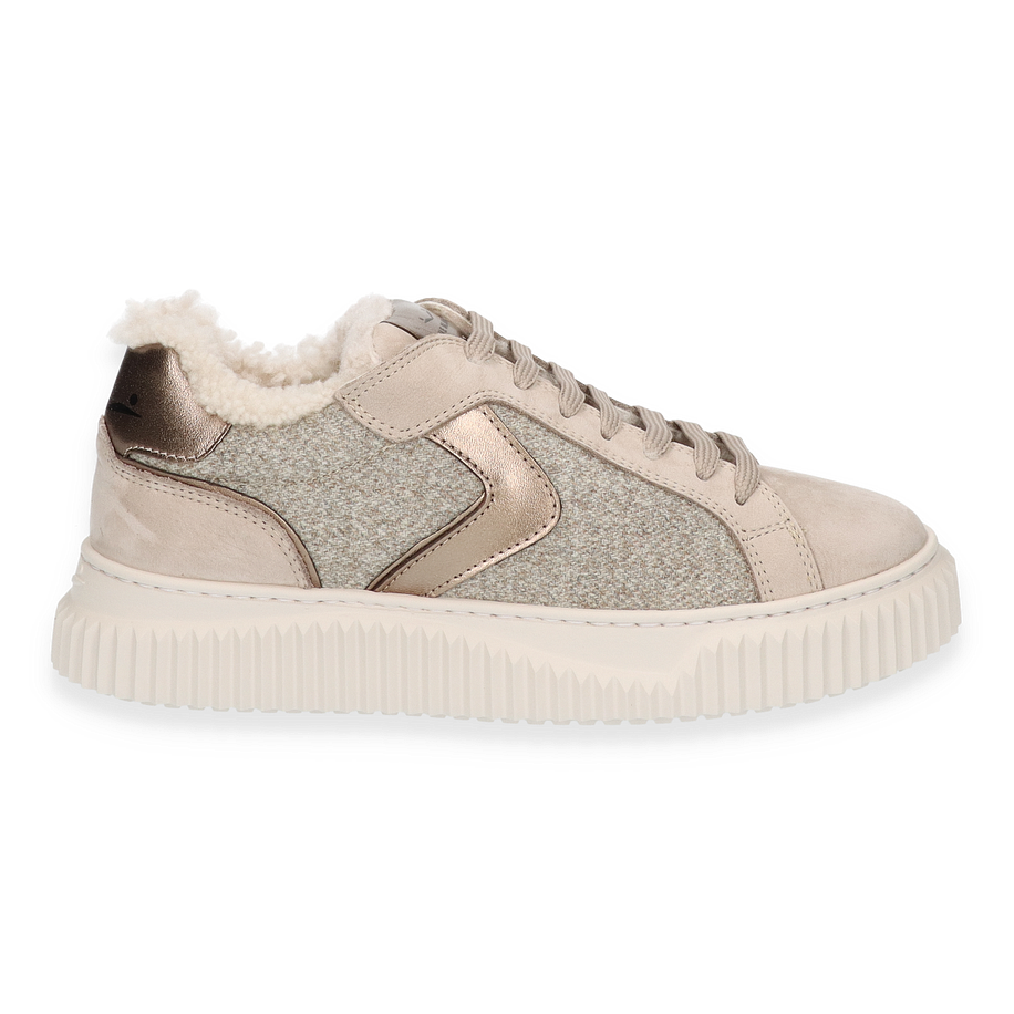 Der Voile Blanche Sneaker LIPARI für Damen präsentiert sich in einem eleganten Hellgrau, das durch subtile Metallic-Akzente veredelt wird. Die Kombination aus hochwertigem Leder und Textil verleiht dem Schuh nicht nur eine ansprechende Optik, sondern auch eine robuste Struktur. Der Sneaker besticht durch sein modernes Design mit einer markanten, profilierten Gummisohle, die für einen sicheren Halt sorgt. Das Warmfutter verspricht angenehme Wärme und Komfort, ideal für kühlere Tage.