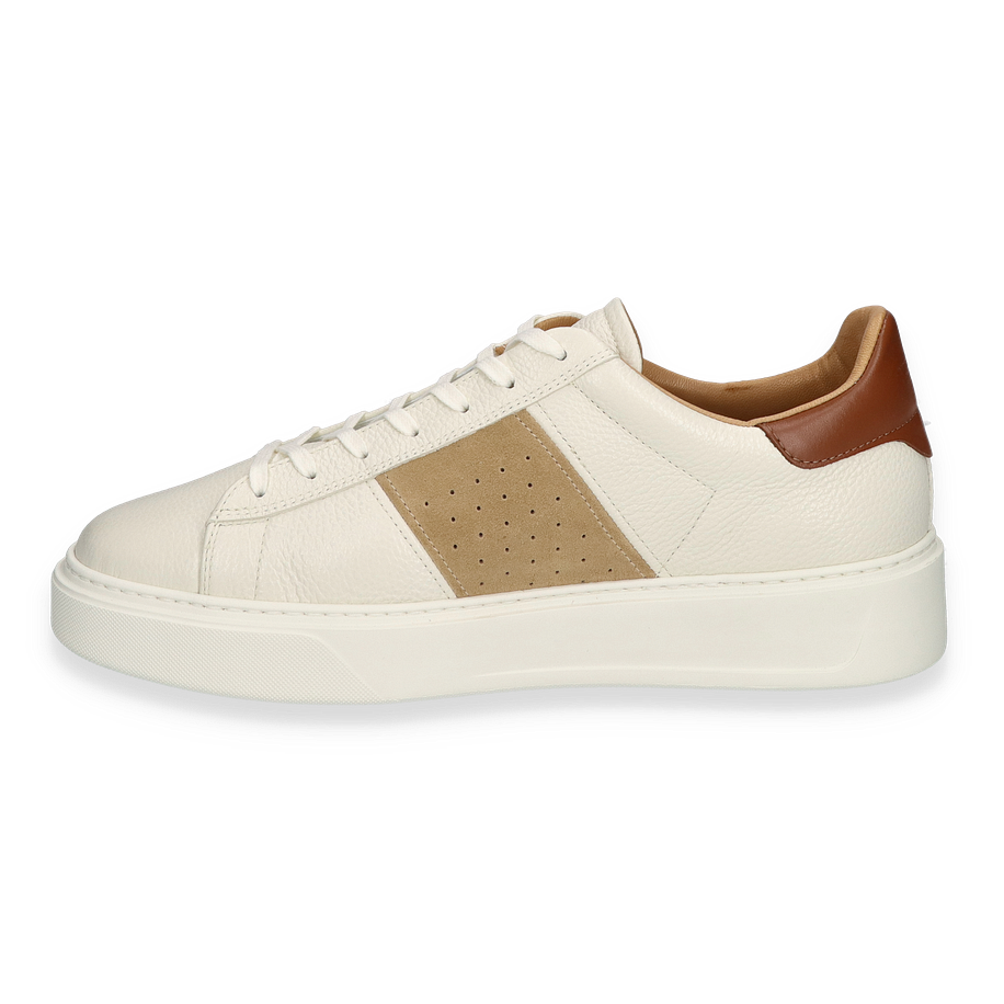 Dieser Sneaker bietet nicht nur optische Vorzüge, sondern auch hohen Tragekomfort. Die Leder-Innensohle sorgt für ein angenehmes Fußklima, während die Gummisohle für ausgezeichnete Trittsicherheit sorgt. Mit einer Absatzhöhe von 4 cm bietet der Schuh eine optimale Balance zwischen Stil und Komfort. Die hochwertige Verarbeitung und die Verwendung von Leder als Obermaterial unterstreichen die Langlebigkeit und Qualität dieses Modells. Perfekt für den anspruchsvollen Mann, der Wert auf Stil und Komfort legt.