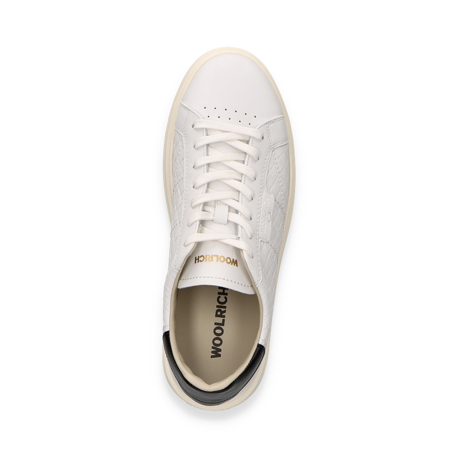 Entdecken Sie den eleganten Sneaker von Woolrich in klassischem Weiß, der durch sein stilvolles Design und die hochwertige Verarbeitung besticht. Der Schuh kombiniert eine glatte Lederoberfläche mit einer subtilen Steppung, die ihm eine raffinierte Textur verleiht. Der dezente Kontrast an der Ferse setzt einen modischen Akzent, während die Schnürung für eine optimale Passform sorgt. Dieser Sneaker für Herren ist die perfekte Wahl für einen stilvollen Auftritt, sei es im Büro oder in der Freizeit.