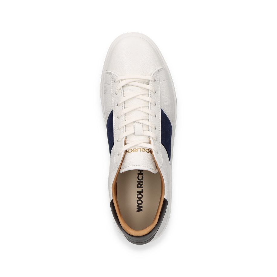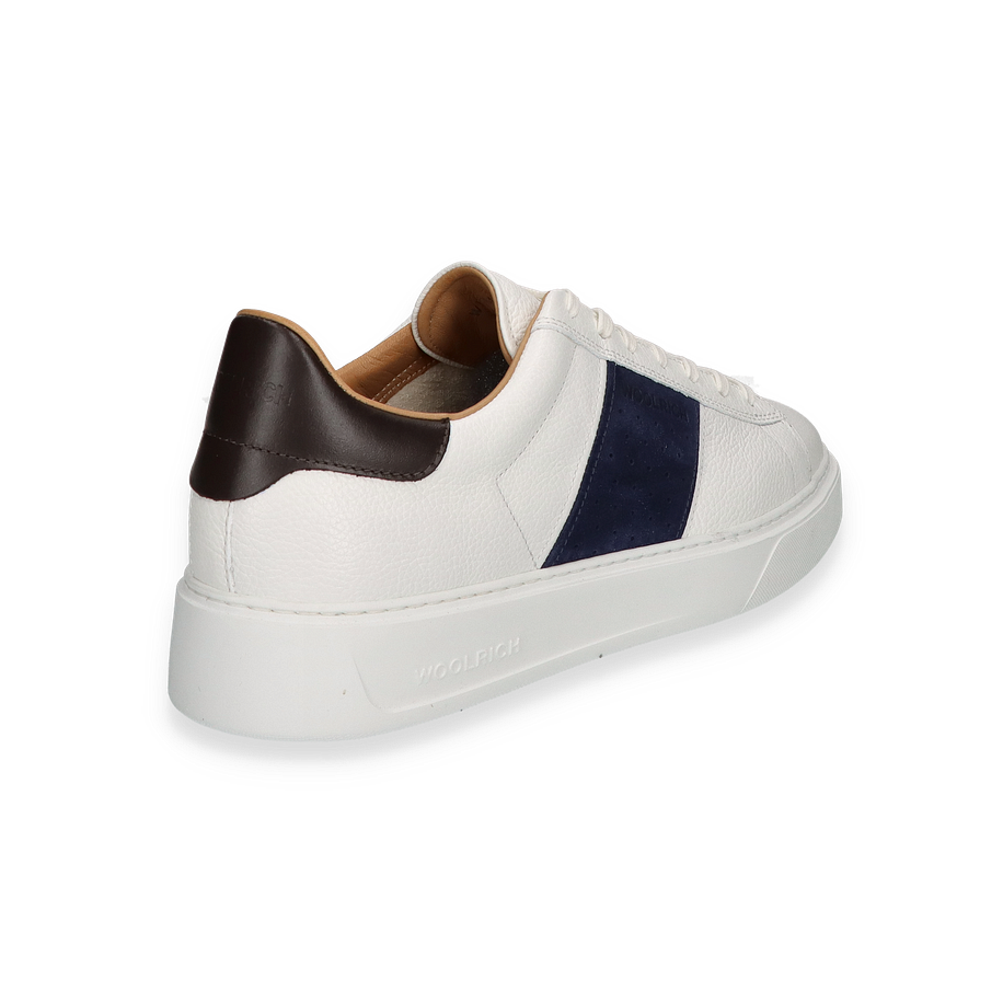 Erleben Sie den zeitlosen Stil der Woolrich Sneaker für Herren in elegantem Weiß. Diese Schuhe zeichnen sich durch ein modernes Design mit einem subtilen, dunkelblauen Akzent an der Seite aus, der einen Hauch von Raffinesse hinzufügt. Die Kombination aus hochwertigem Leder als Obermaterial und einer sorgfältig gearbeiteten Gummisohle bietet nicht nur einen stilvollen Look, sondern auch hervorragenden Komfort und Haltbarkeit. Die dezente Markenprägung auf der Sohle unterstreicht die Exklusivität dieses Modells.